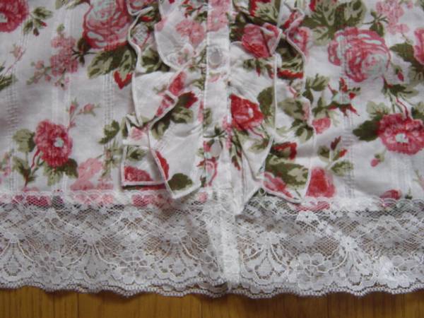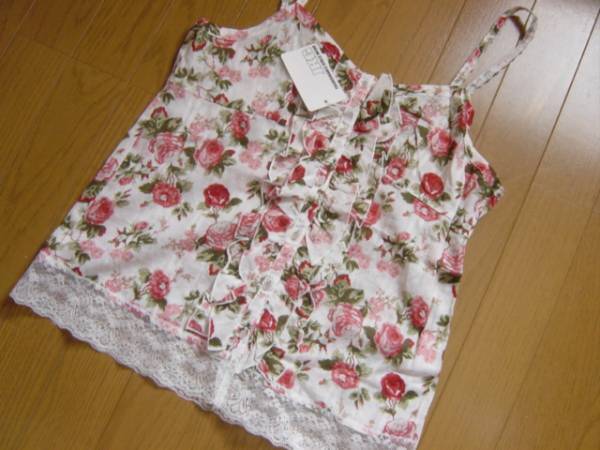 新品11号★薔薇柄フリル&レースコットンキャミソール