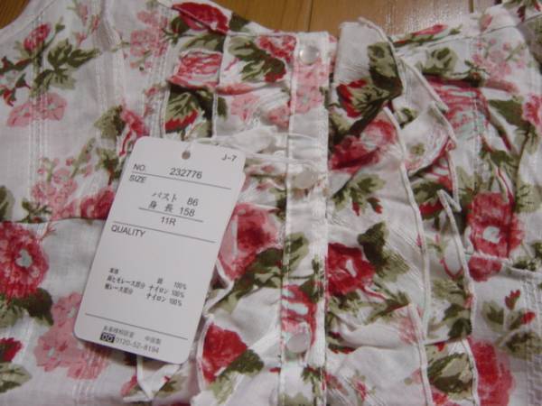 新品タグつきの、白地にピンク系薔薇柄をあしらったコットンキャミソールです。