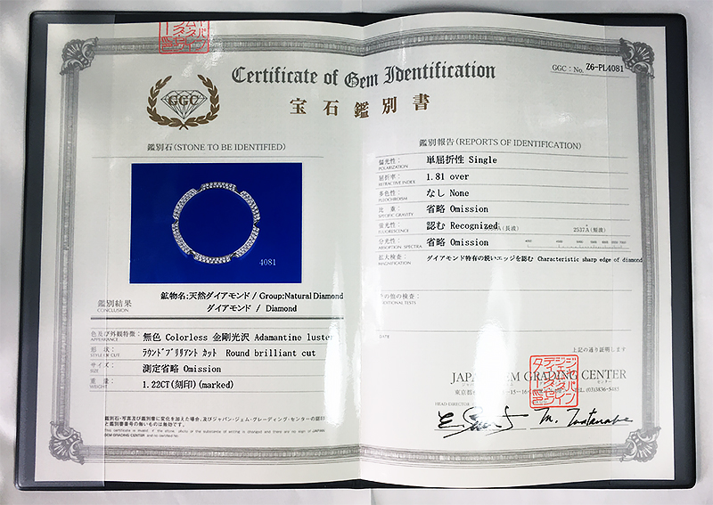 また、宝石には100%の信頼を頂く為、正式な鑑別機関発行の鑑別書を無料で付属しています。