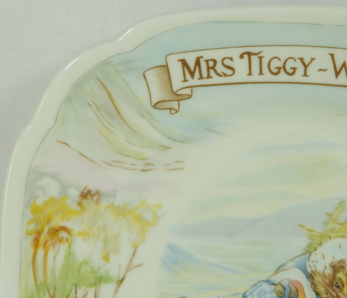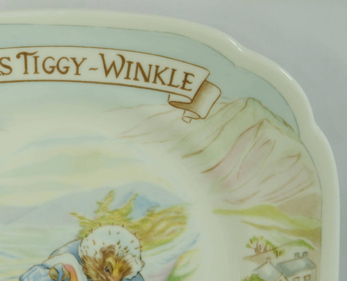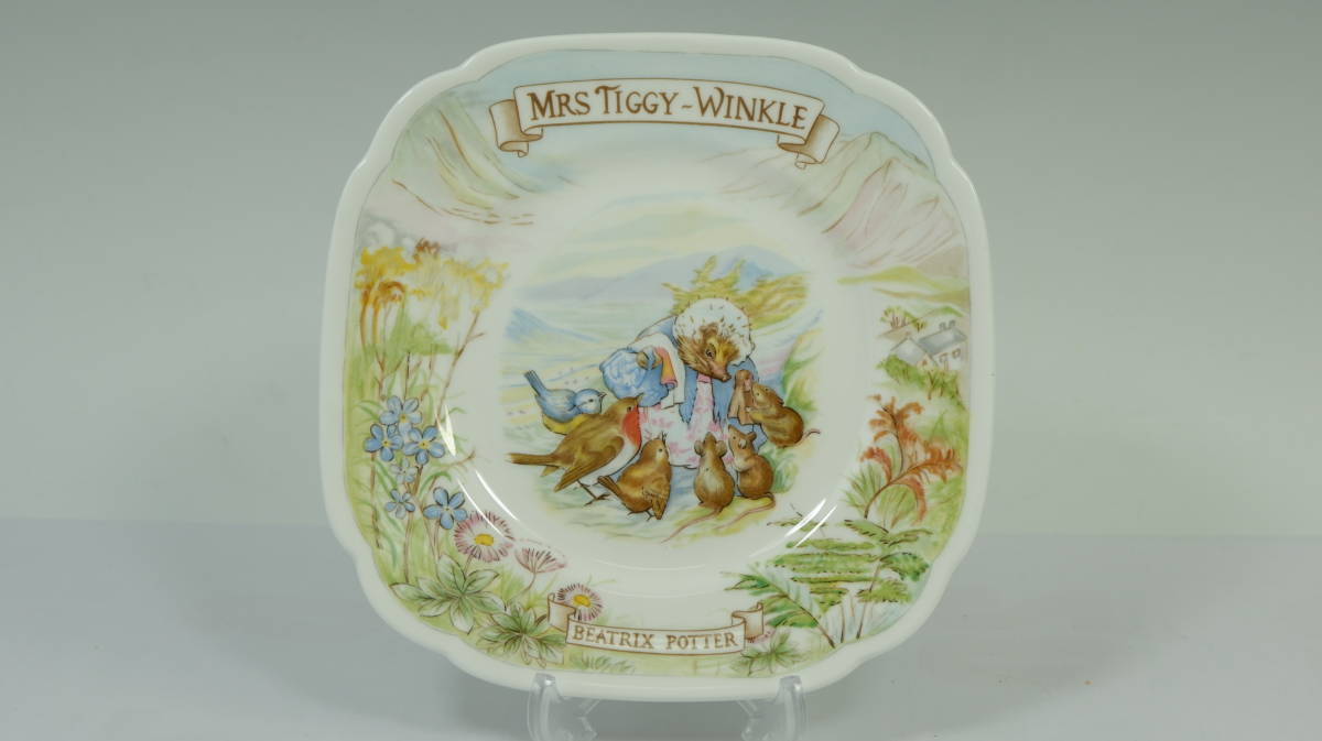 ビアトリクス ポターの作品、ピーターラビット Mrs.Tiggy-winkle(ティギーおばさん)のスクエアプレートです。
