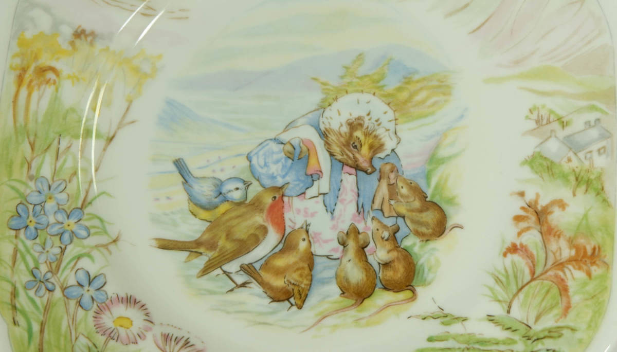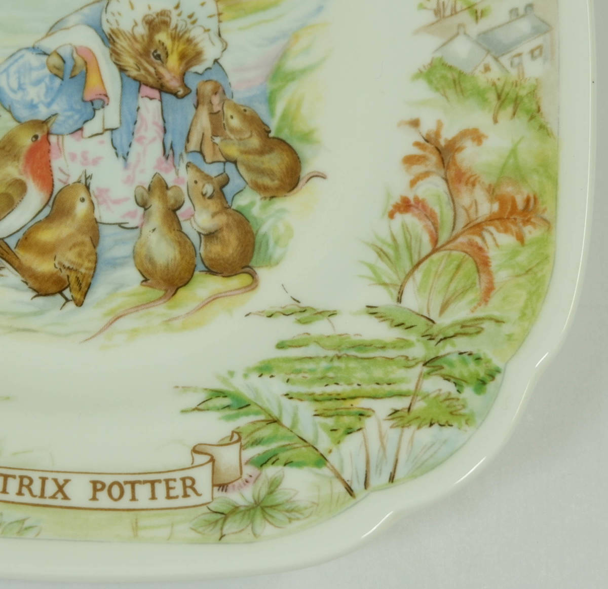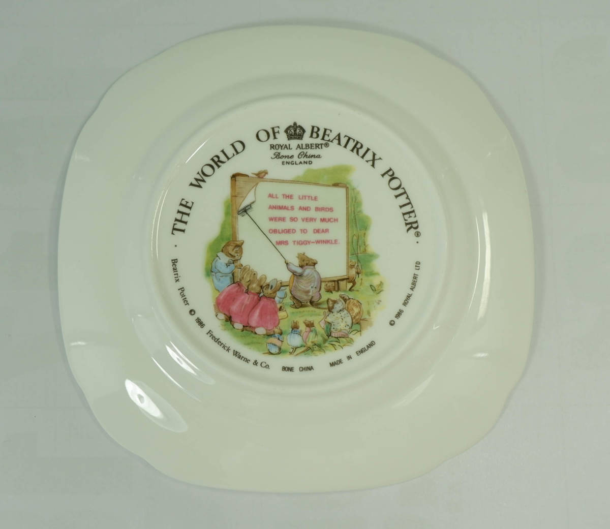 ビアトリクス ポターの作品、ピーターラビット Mrs.Tiggy-winkle(ティギーおばさん)のスクエアプレートです。