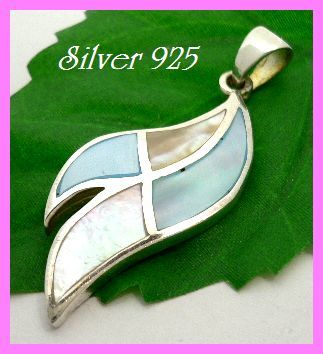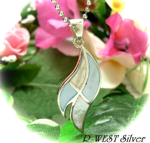 シルバー925銀のシェル貝殻入り ペンダントtypeO/インレイ2色[ブルー×ホワイト]
