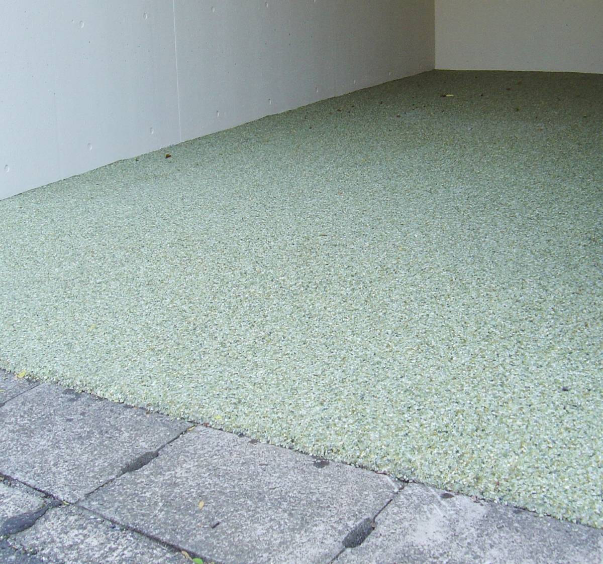 ※ 庭の雑草予防に、土の下地に砕石を50㎜厚程度で敷き固め、2~30㎜厚で、樹脂舗装します。