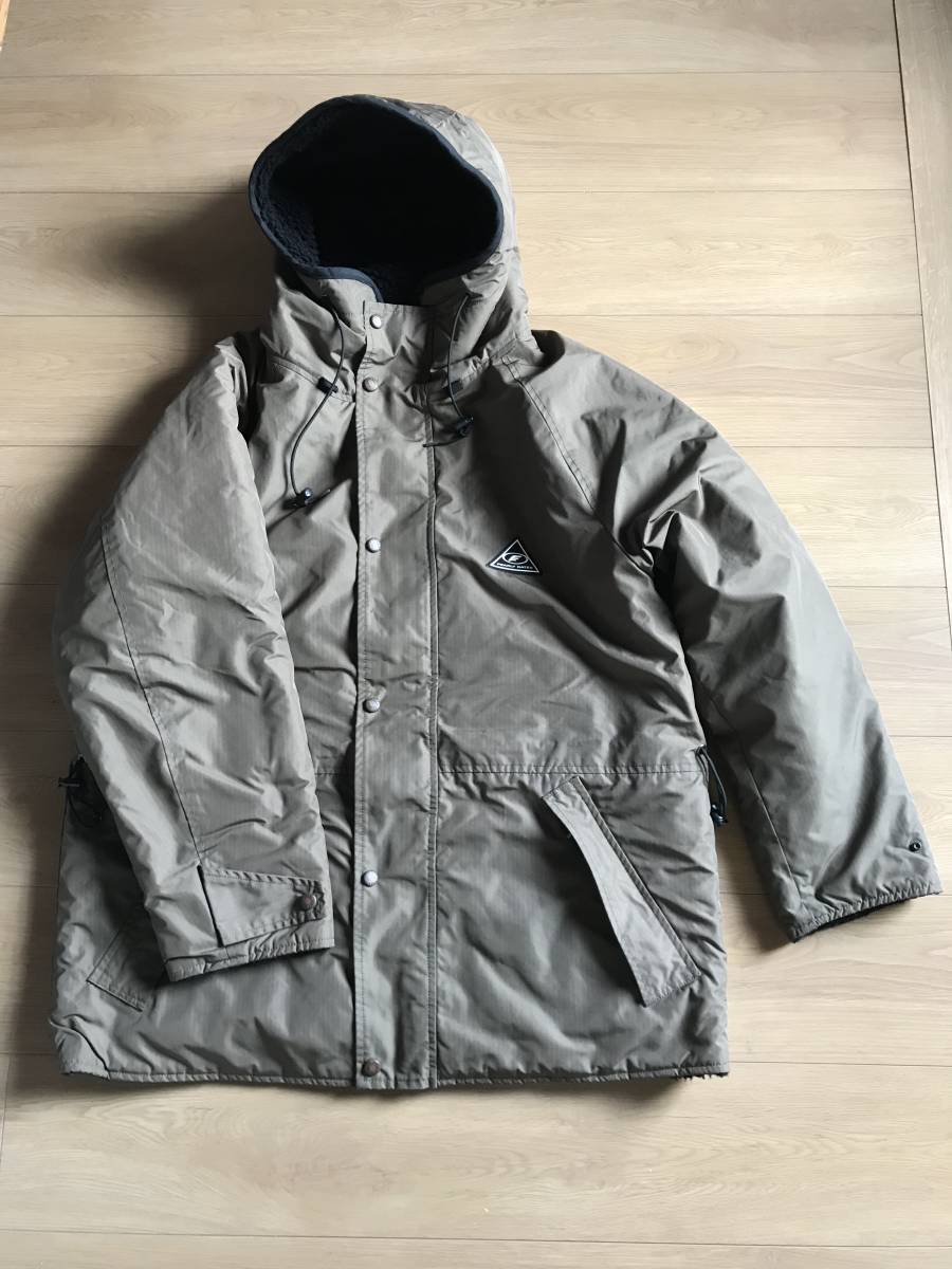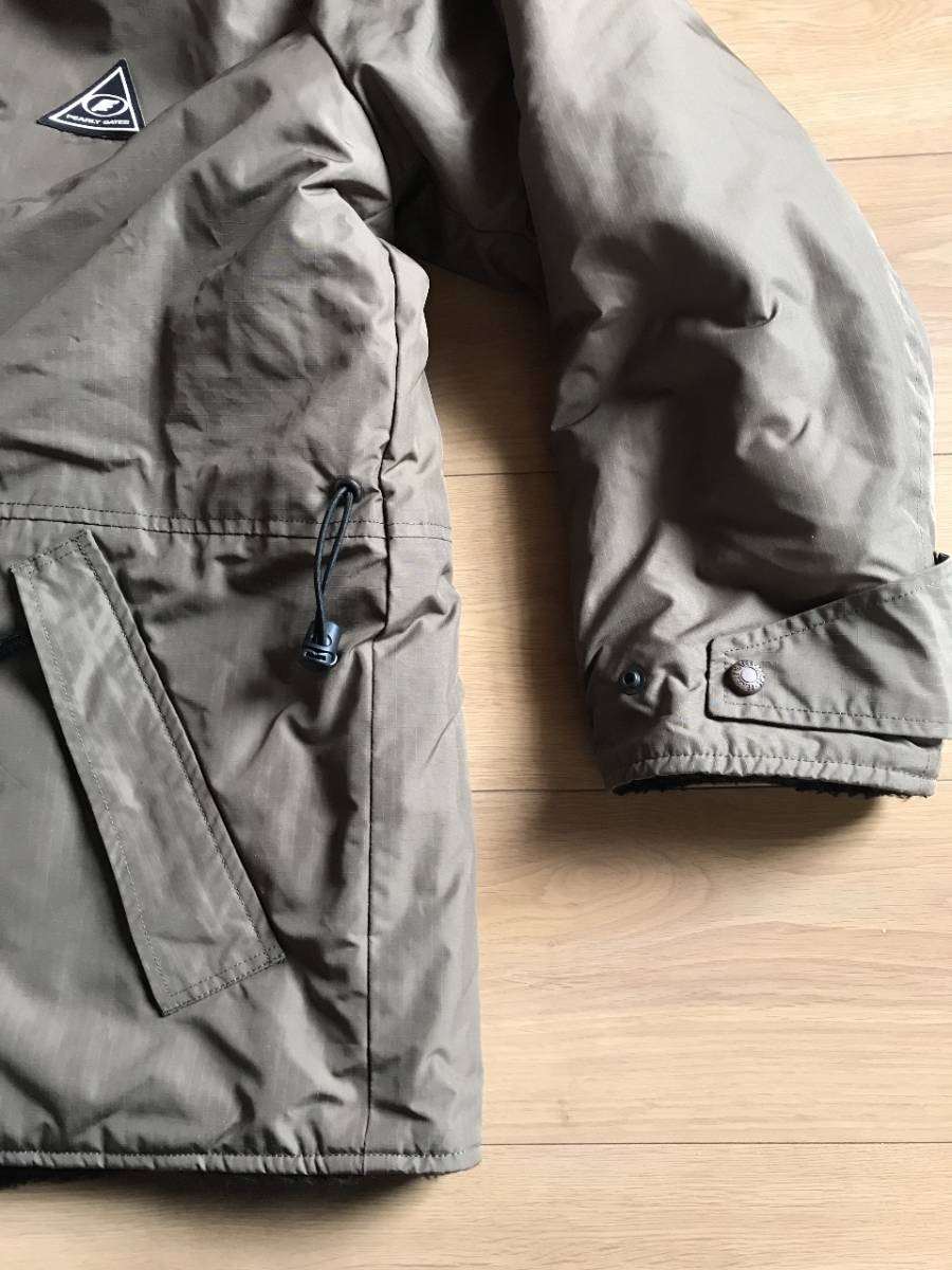 上田桃子プロが着用していることで有名・大人気のパーリーゲイツ。そのパーリーゲイツのジャケットです。 中古のお品です。 内側が全面ボアになっています。左胸には「PEARLYGATES」のロゴ入りです。腹部にはポケットがあります。このポケットはファスナー付でそのファスナーを覆うように布が被せられスッキリとした作りになっています。前面中央にはファスナーとボタン付きで気密性に優れとても暖かいです。また、このボタンとファスナーは首を覆うくらいの高さまで付いています。そしてボタンの一つ一つには「PEARLYGATESSPORT」のロゴが刻まれています。またファスナーのスライダーにも「PEARLYGATESSPORT」のロゴ入りです。腹部にはアジャスター(ゴムの線)が入っていて、両サイドの先端を引っ張って調整できます。袖には2段階に袖口を調整できるボタンとベルトのようなものが付いています。ボタンにも「PEARLYGATESSPORT」のロゴが刻まれています。フードにも縁にアジャスター(ゴムの線)が入っていて、先端を引っ張って調整できます。 暖かさにこだわったアウターですが、お洒落に着られるお勧め商品です。シティユースにもオシャレです! 右腹部表面に2か所スレたような薄い傷があります。ご着用に問題のある程度ではありません。また全体的に使用感があります。格安スタートしますのでこの点ご了承の上、ご入札をお願い致します。お早めにどうぞ! 表記サイズ:2(メンズ) チェスト:92 ウエスト:74~78 身長:168~176 実寸(平置き:約)着丈75cm、身幅62cm、裾幅62cm、袖丈72cm(ラグランのため、襟元より測定) (素人採寸ですので多少の誤差はご了承下さい。) 素材:【表生地】ポリエステル100% 【裏地】(グランド)ポリエステル100% (パイル)アクリル60%、ポリエステル40% 日本製 中古品(クリーニング済み)です。あくまでUSEDということでご理解いただける方のご入札をお待ちしております。保存時の皺やにおいを気にされる方は念のためご入札をお控えください。 他にもパーリーゲイツを多数出品しています。ぜひ覗いてみてくださいね。 | |||