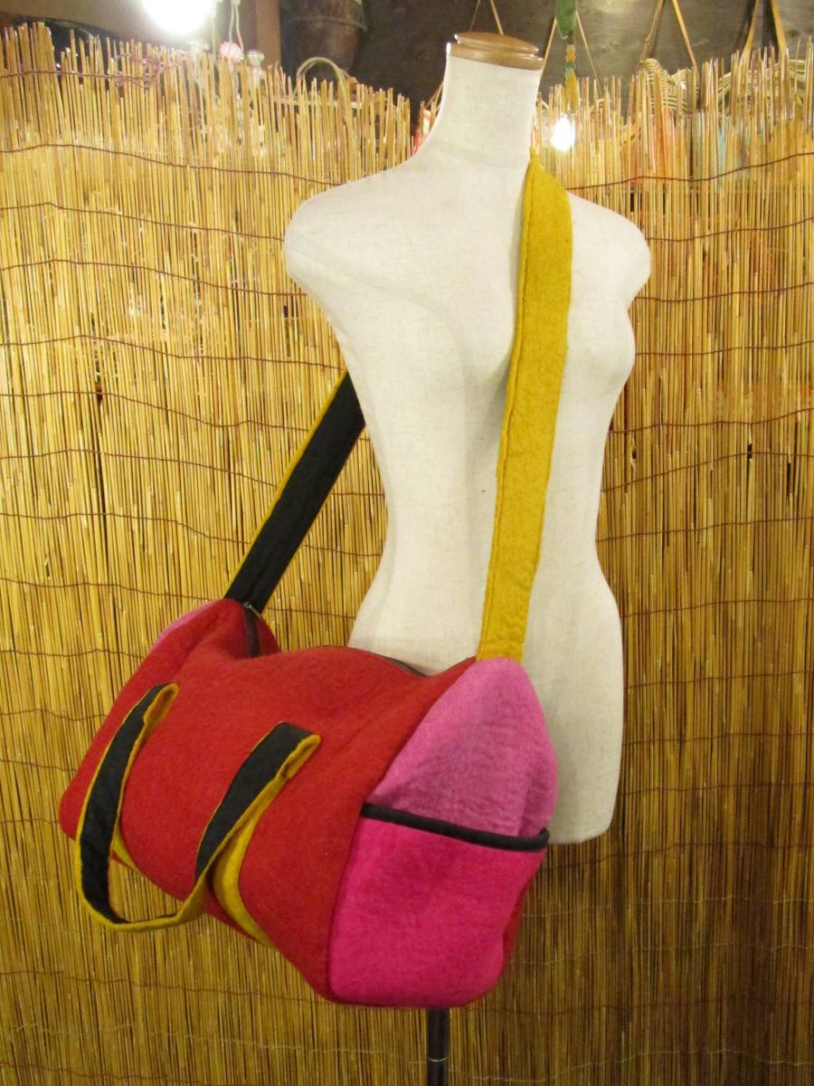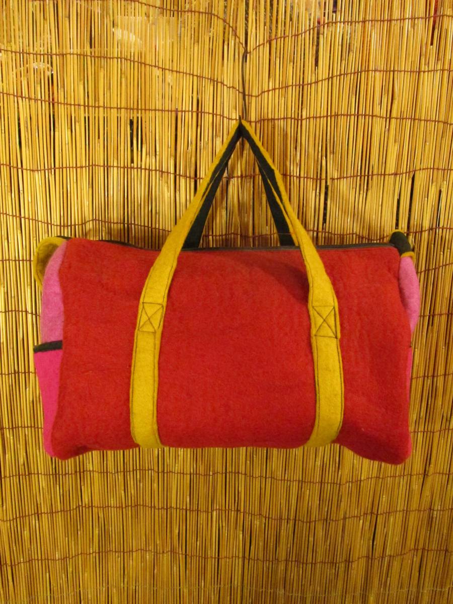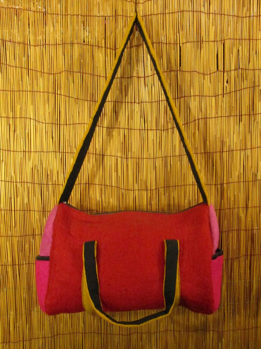 ①新品*フェルト素材*切り替えカラー*2WAY*ボストンバッグ