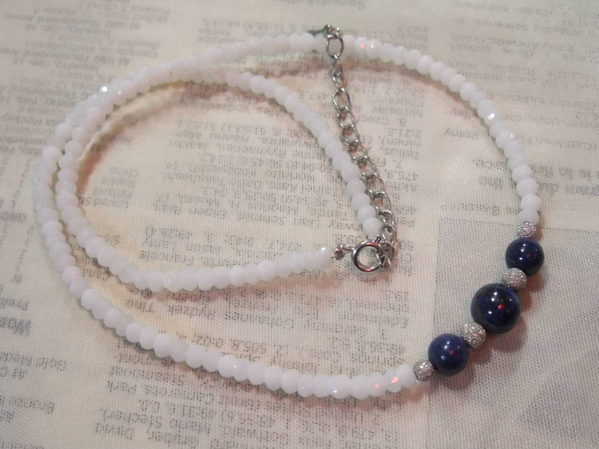 綺麗!極上カットのスノーホワイトアゲートと暗紺色ラピスラズリ丸玉天然石ネックレス♪レトロ系 ビンテージアンティークタイプのデザイン色々 パワーストーン 天然石 魔除け 厄除け 開運