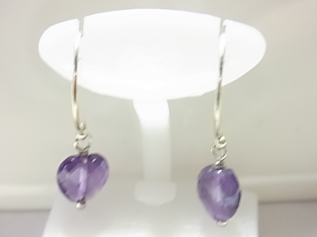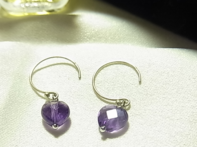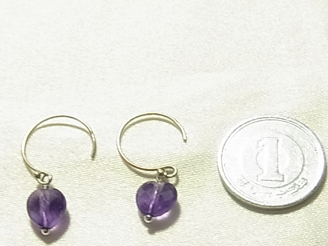 アメジストカラーのストーン調 可愛く揺れるデザイン 華奢な印象が女性らしい フープ調 小ぶりのピアス★