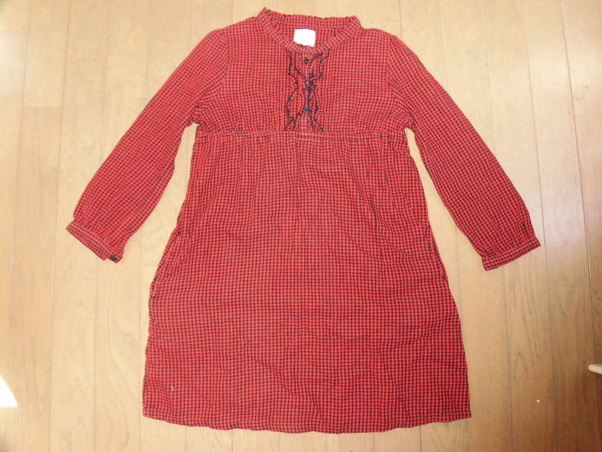 商品説明 ユニクロ★Flannel フランネル★赤チェックのワンピース、通学に★130