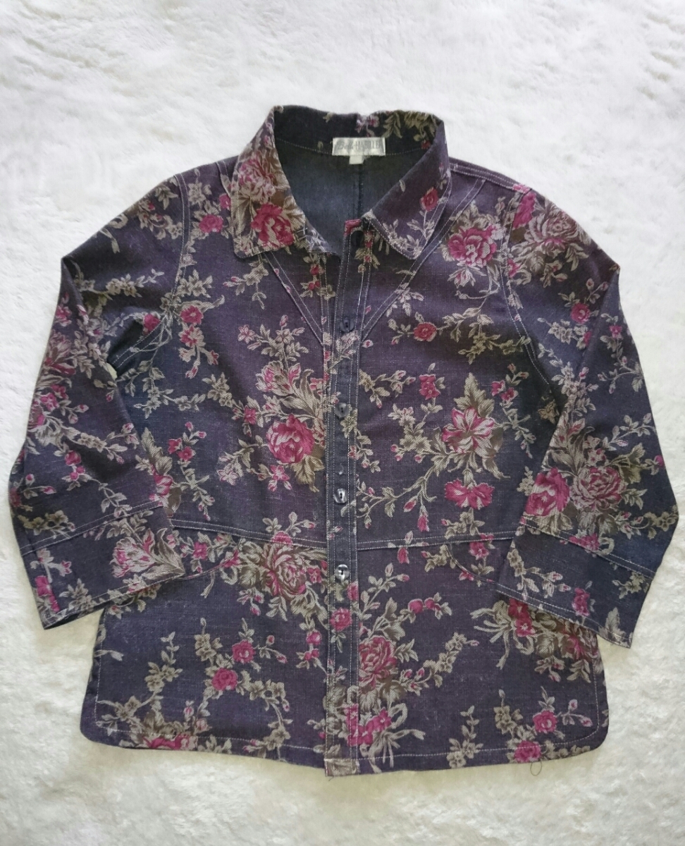キレイな花柄が全体的におしゃれで薄手なジャケットにもブラウスにも着れると思います。