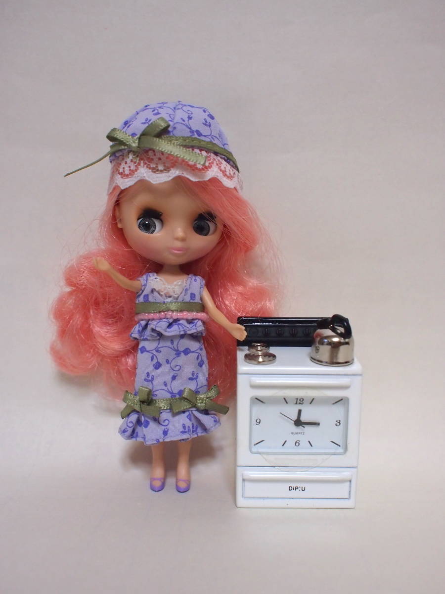 プチブライスのミニキッチン台と時計の実用性を兼ね備えています。