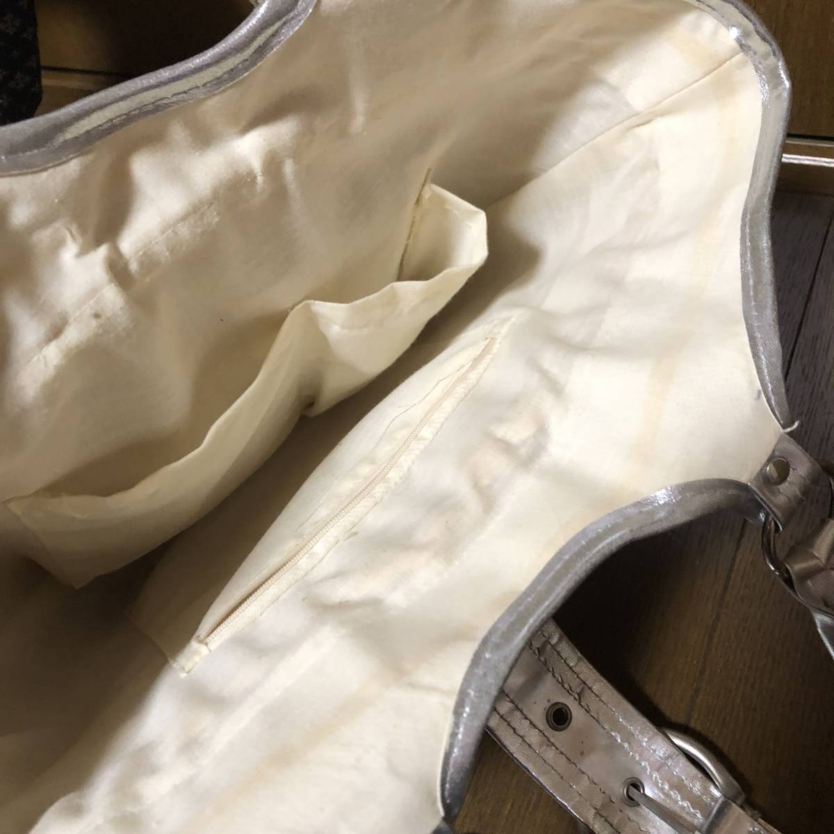 中は両サイドにポケット付きですが、片方はファスナー付きだったかと思うのですが、ファスナーの持ち手が取れて開いたままになっております。