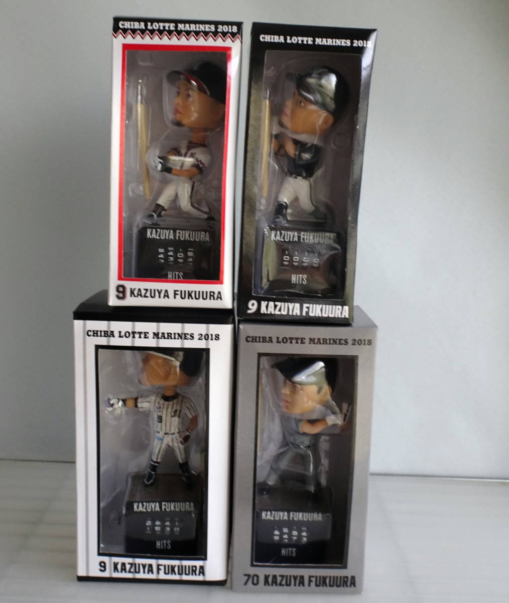 ①【千葉ロッテ マリンズ】ボブルヘッド人形 福浦和也選手(FUKU-METER カウンター付き)2018Ver ②【千葉ロッテ マリンズ】ボブルヘッド人形 福浦和也選手(FUKU-METER カウンター付き) 第一弾(背番号70Ver) ③【千葉ロッテ マリンズ】ボブルヘッド人形 福浦和也選手(FUKU-METER カウンター付き)2018Ver 第二弾(ASIAチャンピオン 2005Ver) ④【千葉ロッテ マリンズ】ボブルヘッド人形 福浦和也選手(FUKU-METER カウンター付き) 第三弾(千葉移転後2度目の日本一 2010Ver) ※上記①~④の合計4点セット 商品状態:新品・未使用品 ※個人保管の為、持帰り時や保管時のしわ・汚れ・経年劣化等ある場合があります。 (気になる個所は添付写真をUPいたします) ※現物の写真を掲載してありますので状態判断してください ※ 細部までのチェック不足により上記に該当する場合もありますので予めご了承お願いいたします。 | ||||
