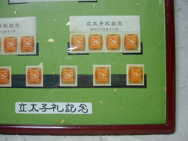 特別出品 ( 3 ) ・額入り・インテリア アート !! 「立太子礼記念」 未使用切手3種完 & 立太子礼シート