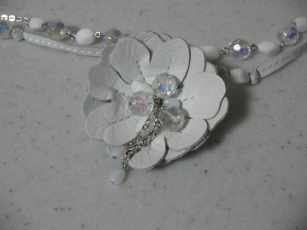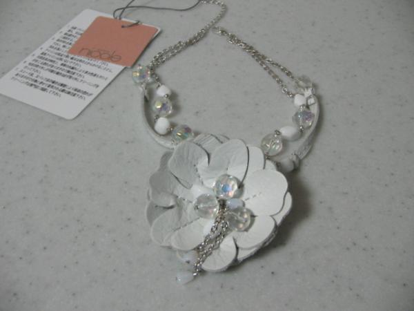 半額以下●ニコル・牛革・お花のチョーカー・ホワイト●新品!
