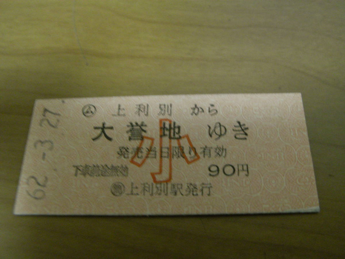 国鉄池北線 ム 上利別から大誉地ゆき 小90円 昭和62年3月27日 簡 上利別駅発行