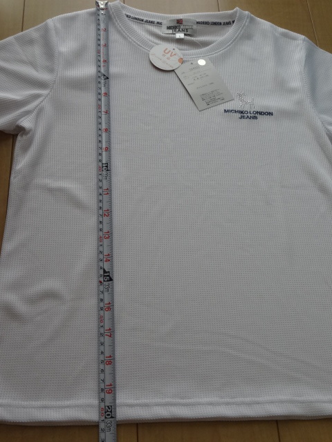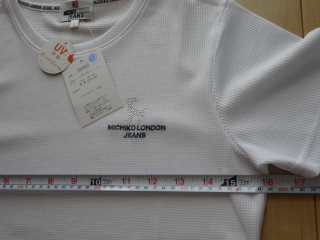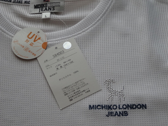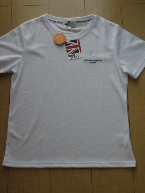 し:新品未使用★MICHIKOLONDONJEANS半袖シャツ★Lサイズ・ホワイト・吸水速乾・UVカット・ヨガ・フィットネス