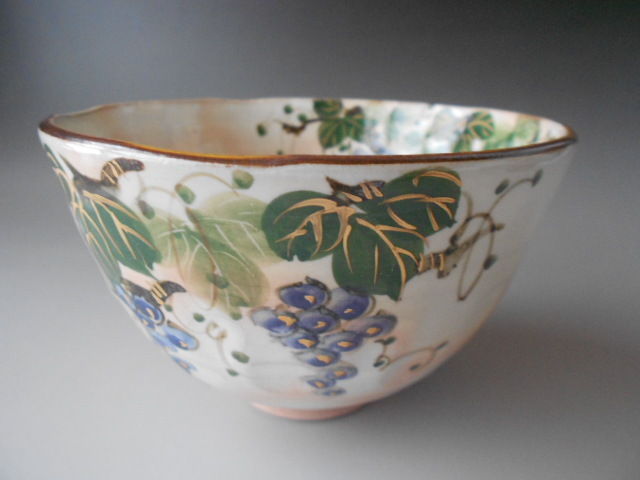 茶道具! 森俊山  ぶどう抹茶碗 京焼 新品 茶器 ギフト