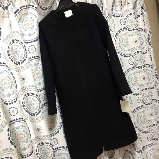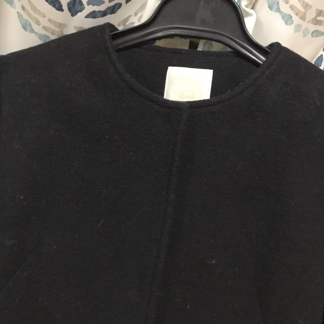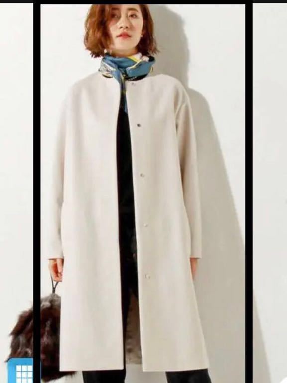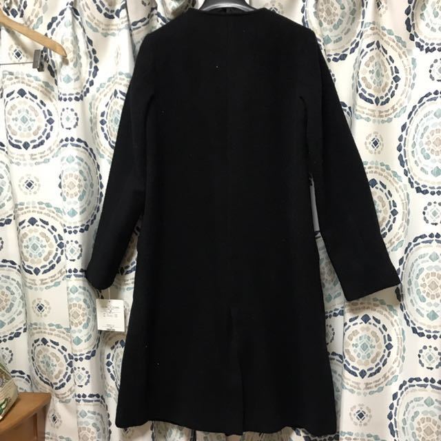 ◆シンプルなノーカラーでボタンも隠れるデザイン♪広がりの少ないほぼストレートラインですがバックにスリットがあるのでさばきは良いです♪ノーカラーなのでファーストールやマフラーと合わせやすい