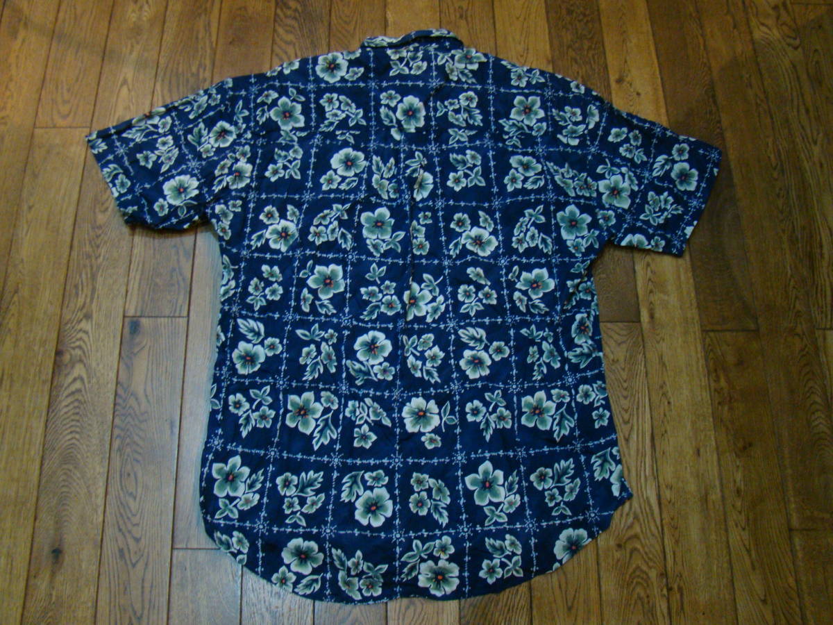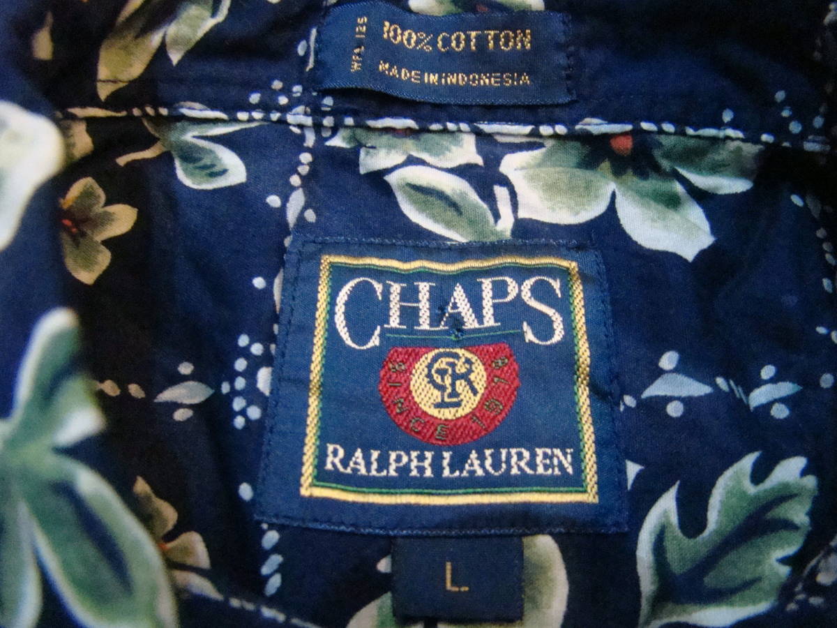 美品 90s Ralph Lauren CHAPS 半袖 ボタンダウン L 花柄 ネイビー コットン ハワイアンシャツ アロハシャツ チャップス ラルフローレン