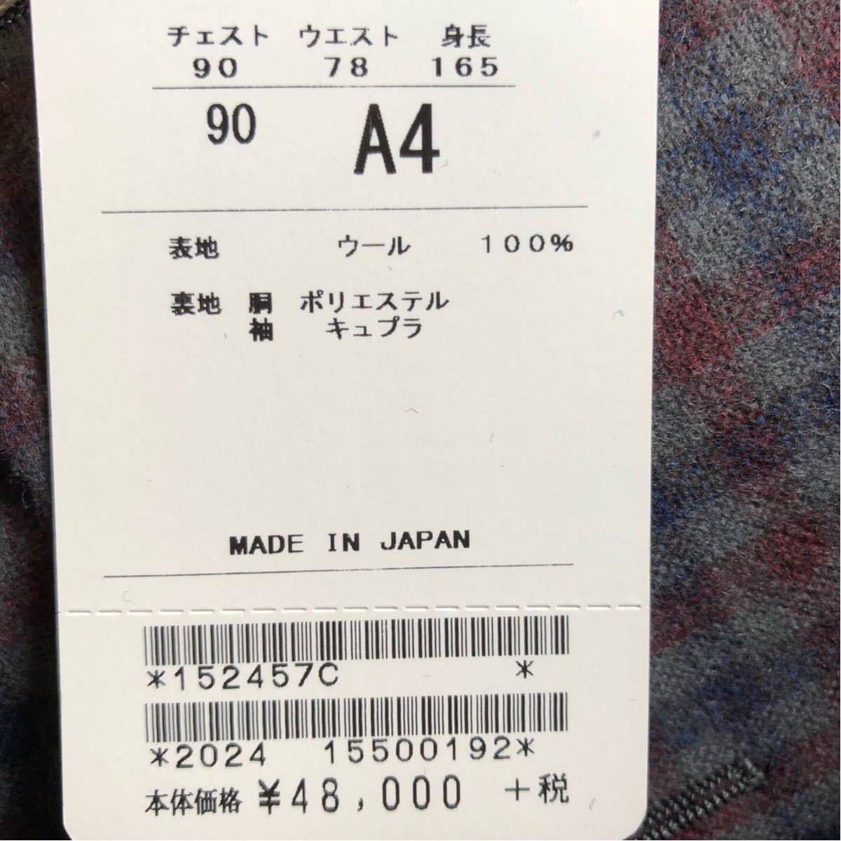 ・サイズ⇒A4 ・各寸法⇒着丈70cm、肩幅45cm、袖丈59cm、脇下身幅50cm ※素人採寸となります、多少の誤差はお許し下さい。 ・表地⇒毛100% ・裏地(総裏)⇒胴/ポリエステル、袖/キュプラ ・色・柄⇒グレー地、レッド&ブルーチェック ・ベント⇒センターベント ・袖ボタン⇒3個 ・台場⇒切台場 ・商品状態⇒新品(秋冬物) R C75425 | ||