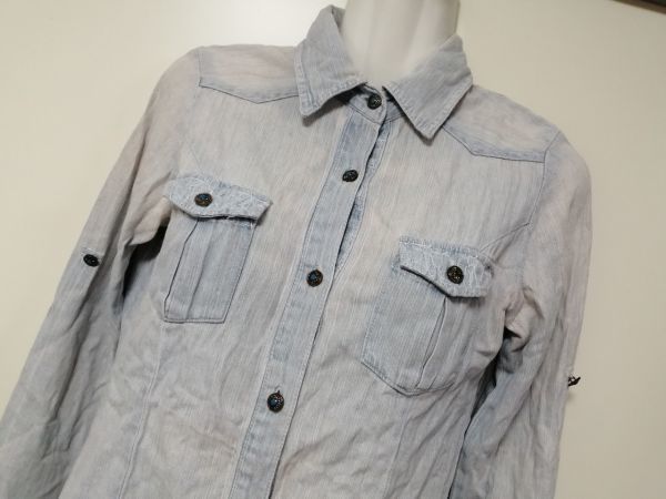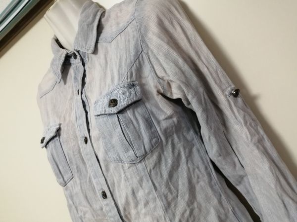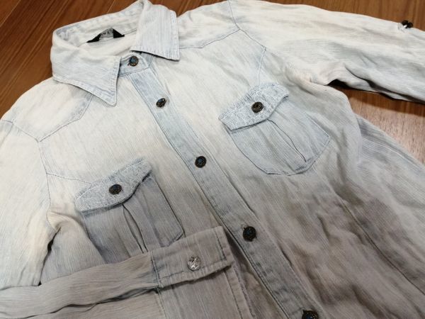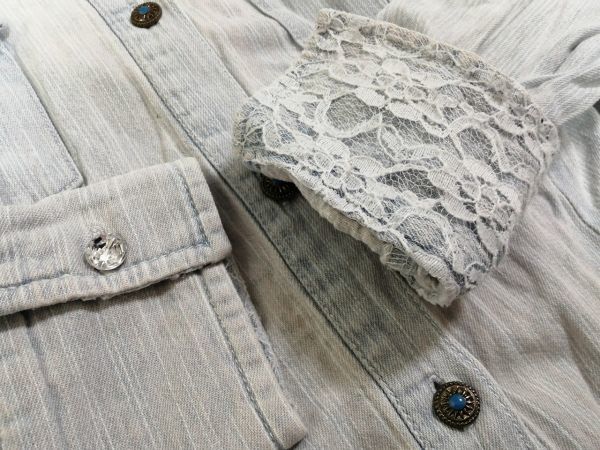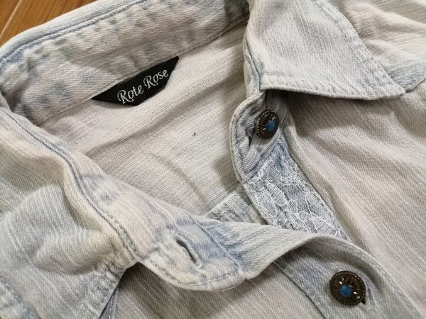 kkyj3115 ■ Rote Rose ■ ローテ ローゼ シャツ トップス デニム風 レース ブルー 青 M