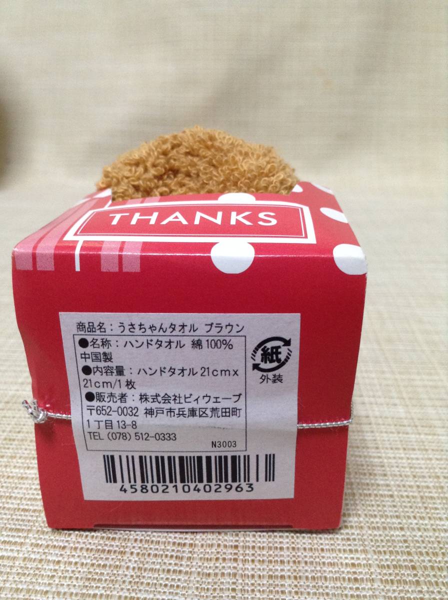 うさちゃんタオル ブラウン ハンドタオル 20cm×20cm 兎/うさぎ/ウサギ