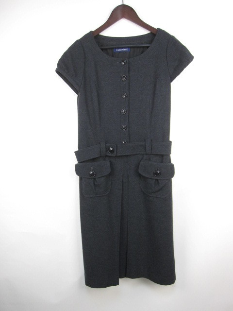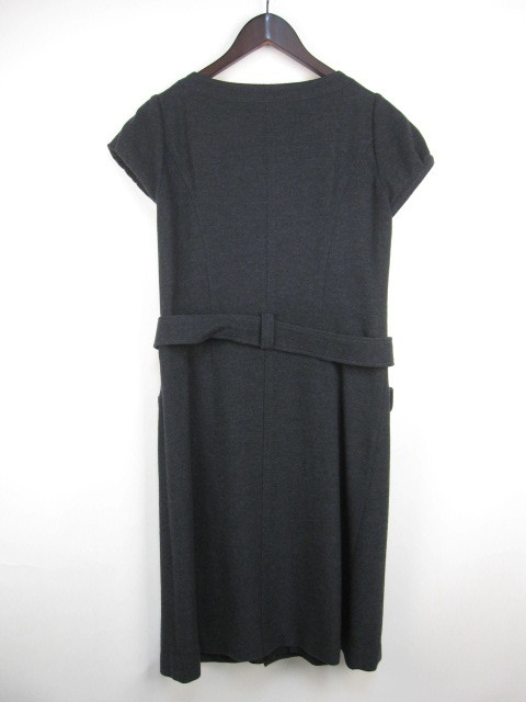 キャラオクルス CARA O CRUZ ワンピース ロング丈 半袖 ウール ベルト 9 グレー 秋冬 D267