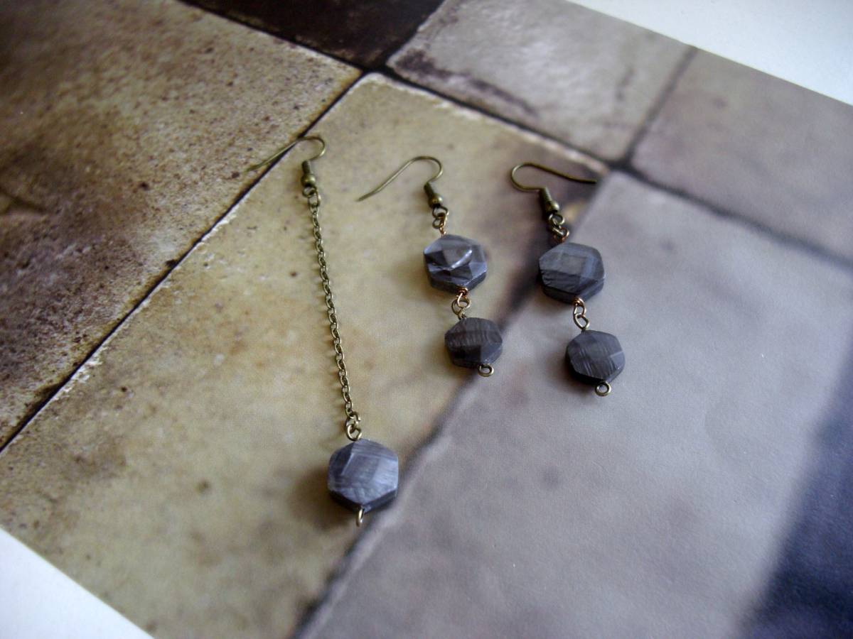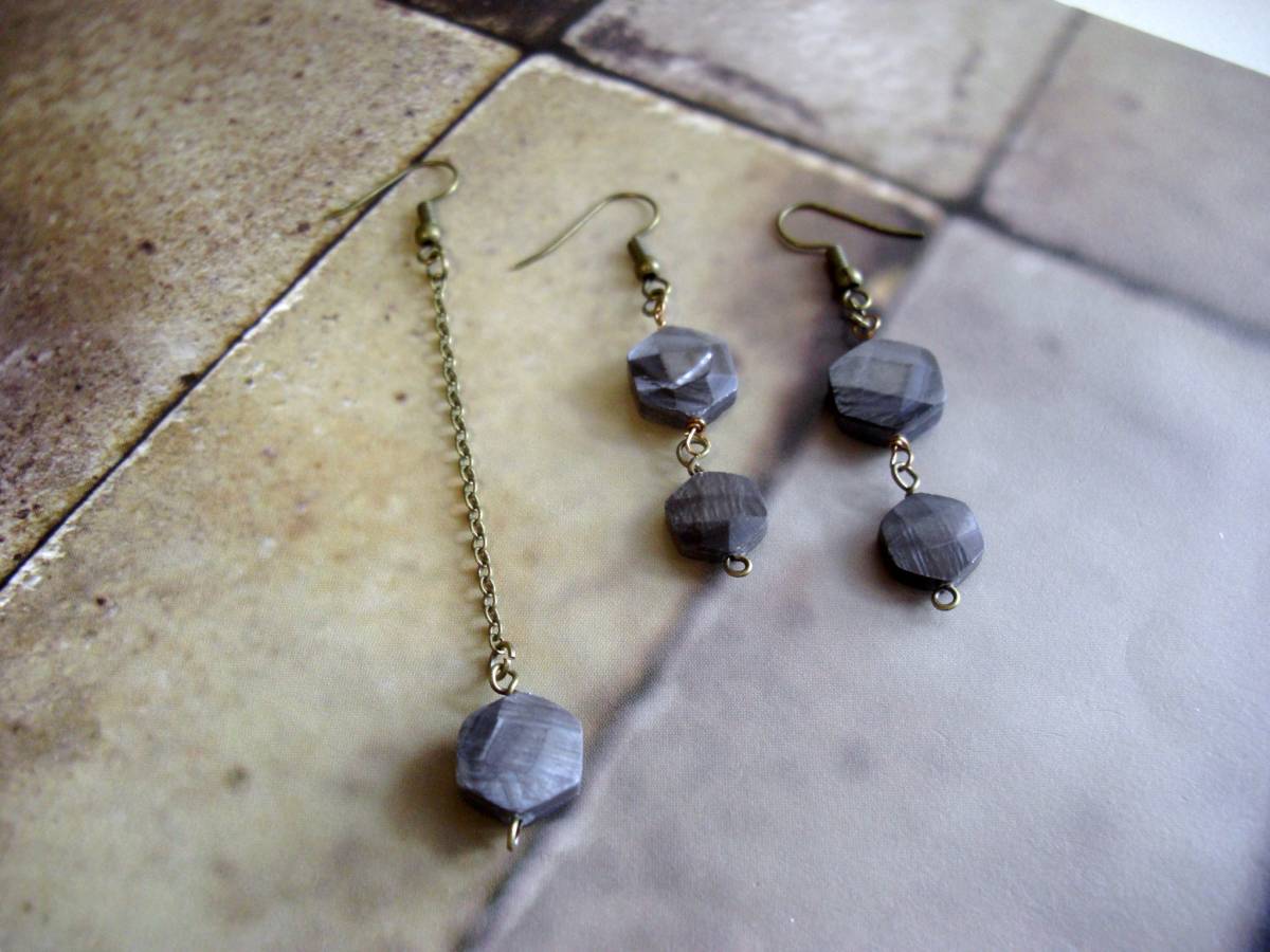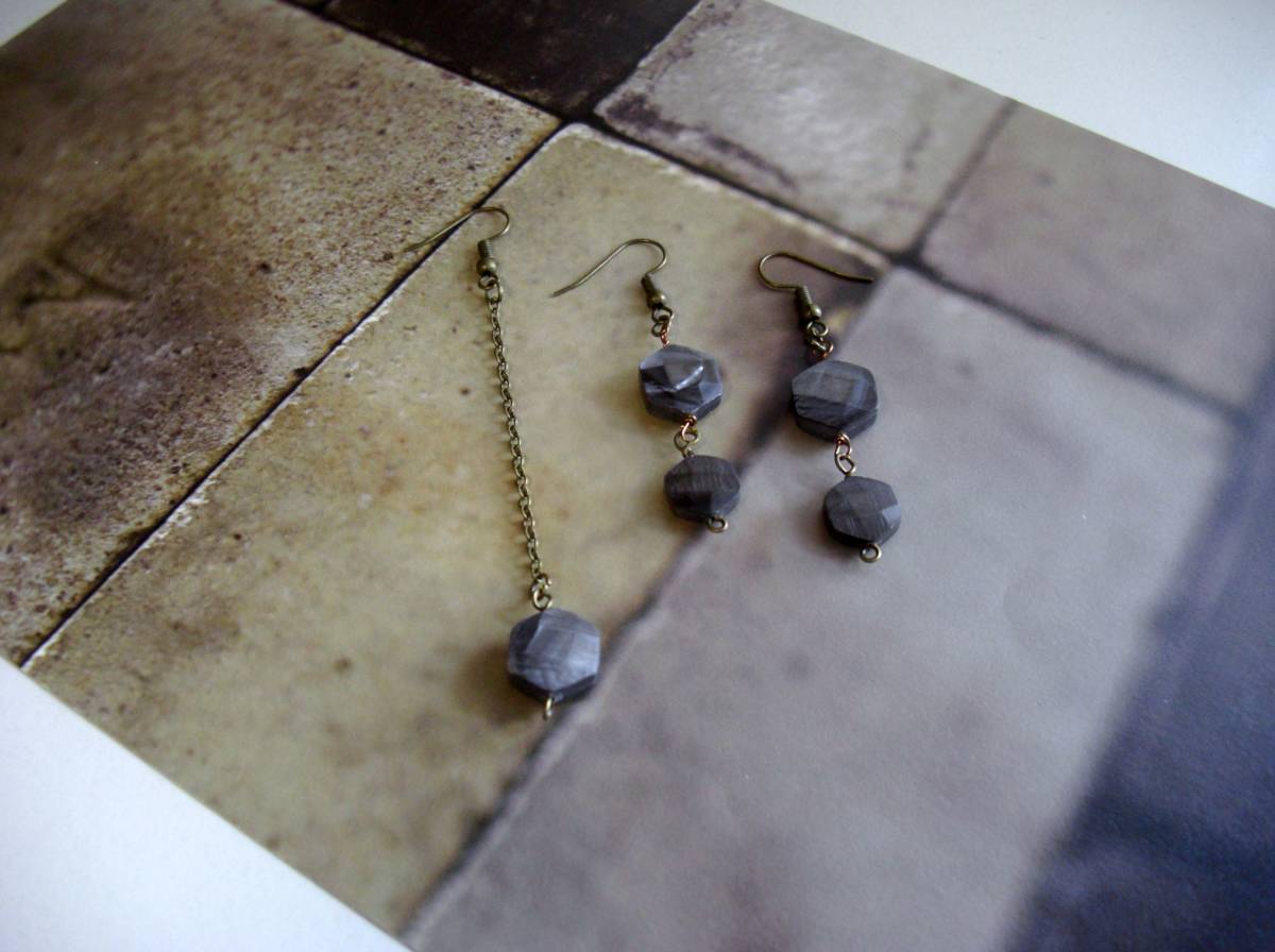 アリスの時間・・シリーズです♪グレーシェルの魔法・・神秘的なグレーシェルのピアス3本セットです♪♪ペア1組とデザイン違い1本、合わせて3本です♪色々な組み合わせで楽しんでいただけます♪多面カットのグレーシェルはひっそりと可憐な 表情です♪個性的な12ミリと10ミリ位の大きさ違いの六角形のシェルを組み合わせました♪チェーンと合わせた長い方のピアス全長9センチ位です♪ペアのピアスは全長6センチ位です♪それぞれイヤリングにも変更出来ます♪お揃いネックレスやブレスレットも出品しています♪♪ シンプルで飽きのこないいつまでも着けられるデザインを考えて作りました!ハンドメイドをご理解頂いてノークレーム、ノーリターンでお願いします