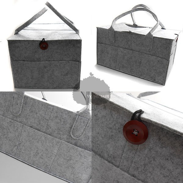 商品名:YGG★新品 おむつケース バッグ 蓋付き グレー 灰色 カラトリーボックス 収納 ストック フェルト 北欧 大容量