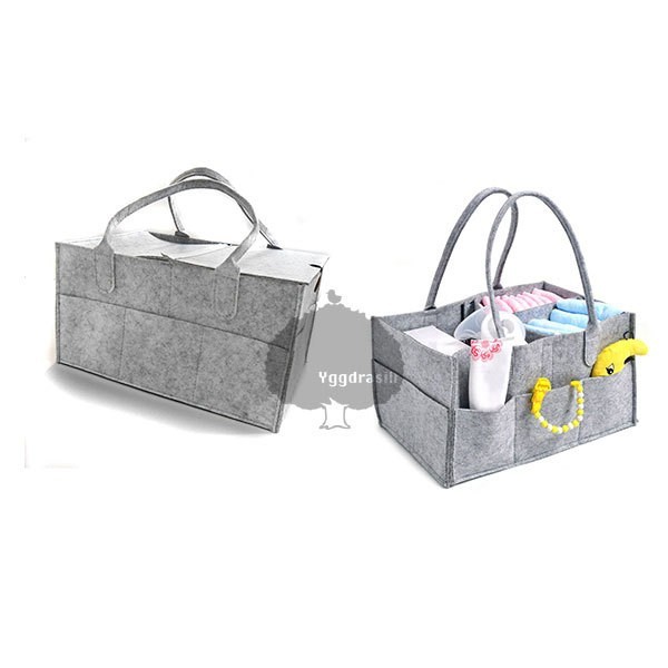 YGG★新品 おむつケース バッグ 蓋付き グレー 灰色 カラトリーボックス 収納 ストック フェルト 北欧 大容量