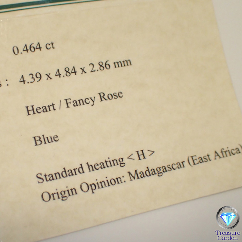 トレジャーG)【コーンフラワー】 ブルーサファイア 0.464ct 【EGLソーティング・産地記載】 ハートカット マダガスカル産