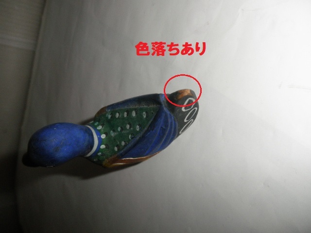 | 木で作製されたカモ鳥です。 全体に擦れ、汚れ感がございます。 尾っぽの部分に色落ち有ます。画像でが判断をお願いいたします。 サイズ 横長さ9cm 高さ7.1cm ーーーーーーーーーーーーーーーーーーーー 神経質なお方・些細な事が気になるお方、 または、新品をお求めのお方は、ご入札をお控えください。 ―――――――――――――――――――――――――――――――――― 画像に写しきれないキズや色の剥れた部分、見落とし等あるかもしれませんが、ご理解の上ご入札をお願いします。 中古品をご理解の上、ノークレームノーリターンでお願いいたします。 アンティークの為、お客様との見解の相違が多少あるかと思いますがご理解の上、ご入札よろしくお願い致します。 送料 追跡 破損 紛失補償なし定形外円 追跡をご希望の場合はプラス(特定記録)をお奨めいたします。 補償と追跡をご希望の場合は、ゆうパック60サイズをお奨めいたします。 | |||