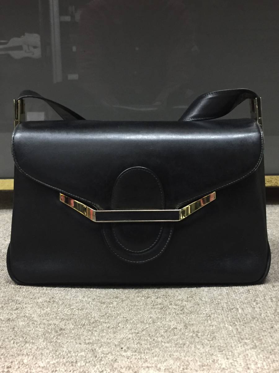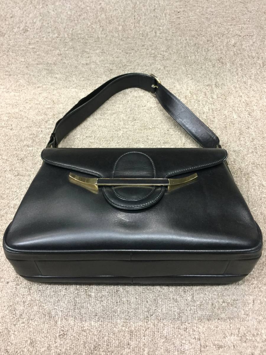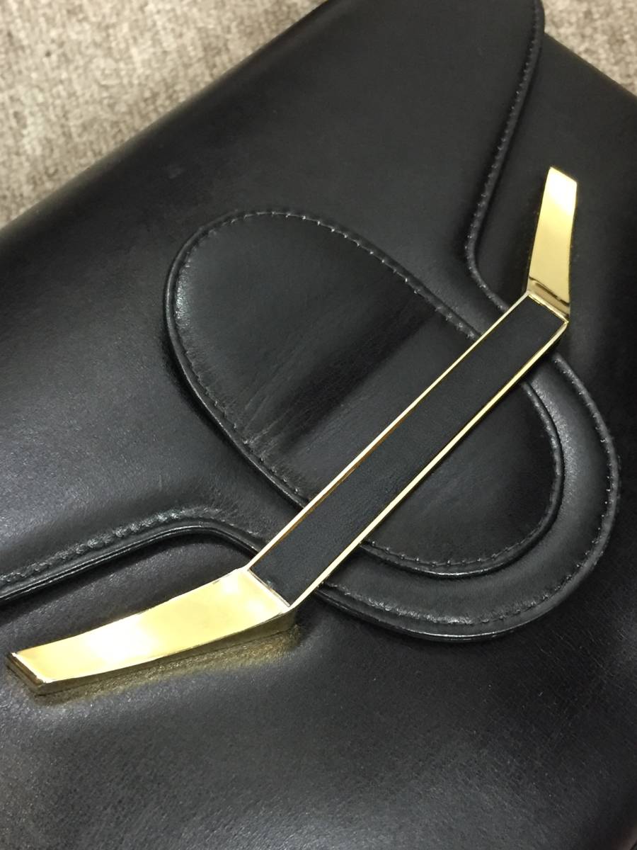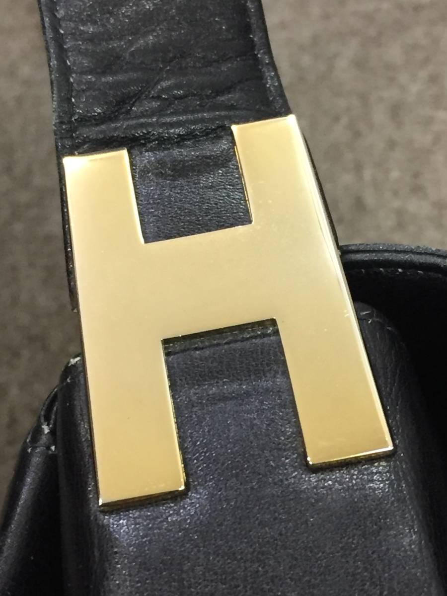 正面にはゴールド金具が付いていて、両サイドにはゴールドのHロゴが付いていて、黒のレザーなので、素敵で高級感もありますね。