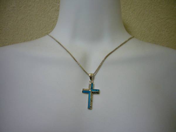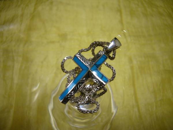 02★クロスネックレストップ/ターコイズ&シルバー925/十字架★