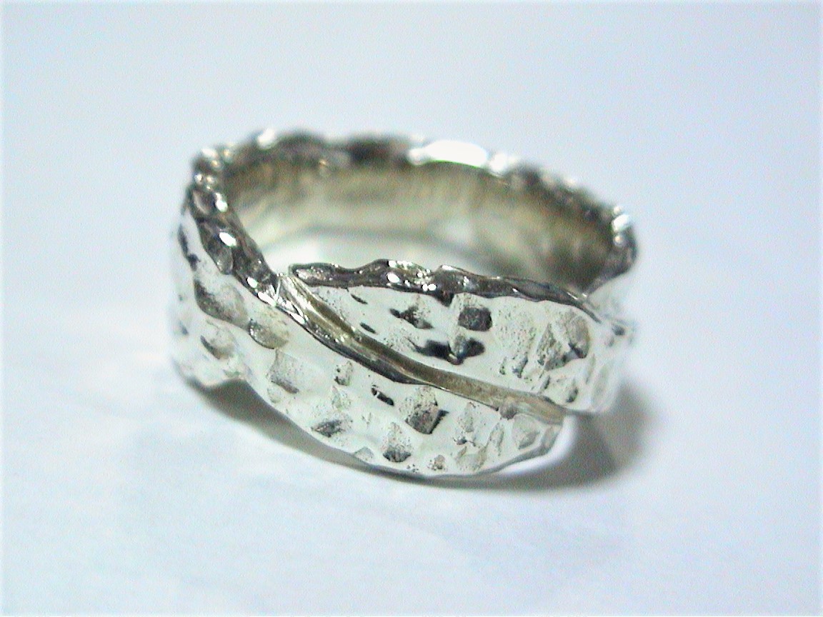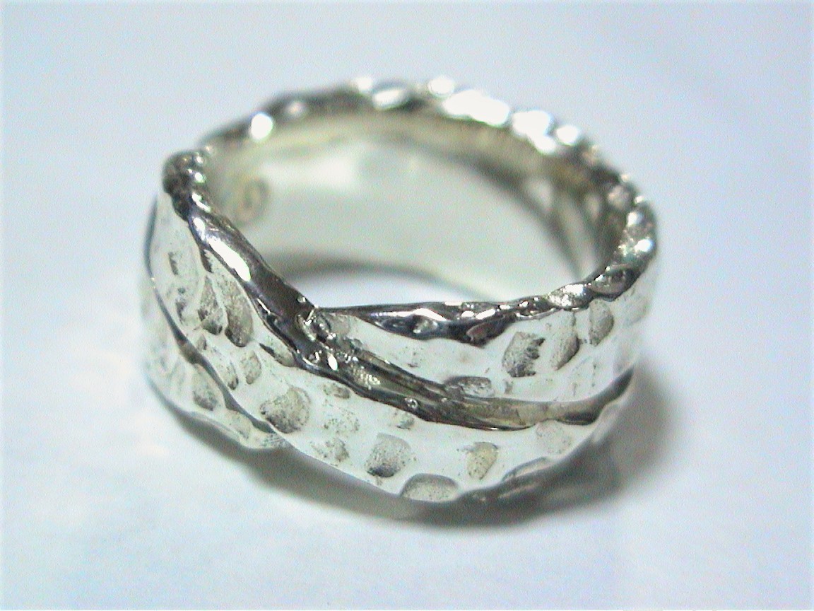 925シルバー製デコボコ平打ちクロスリング VooDooブランド「Across」新品13号。