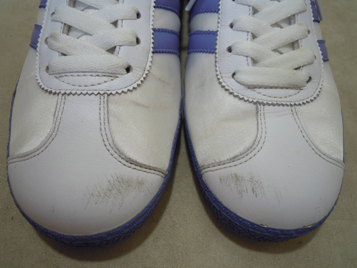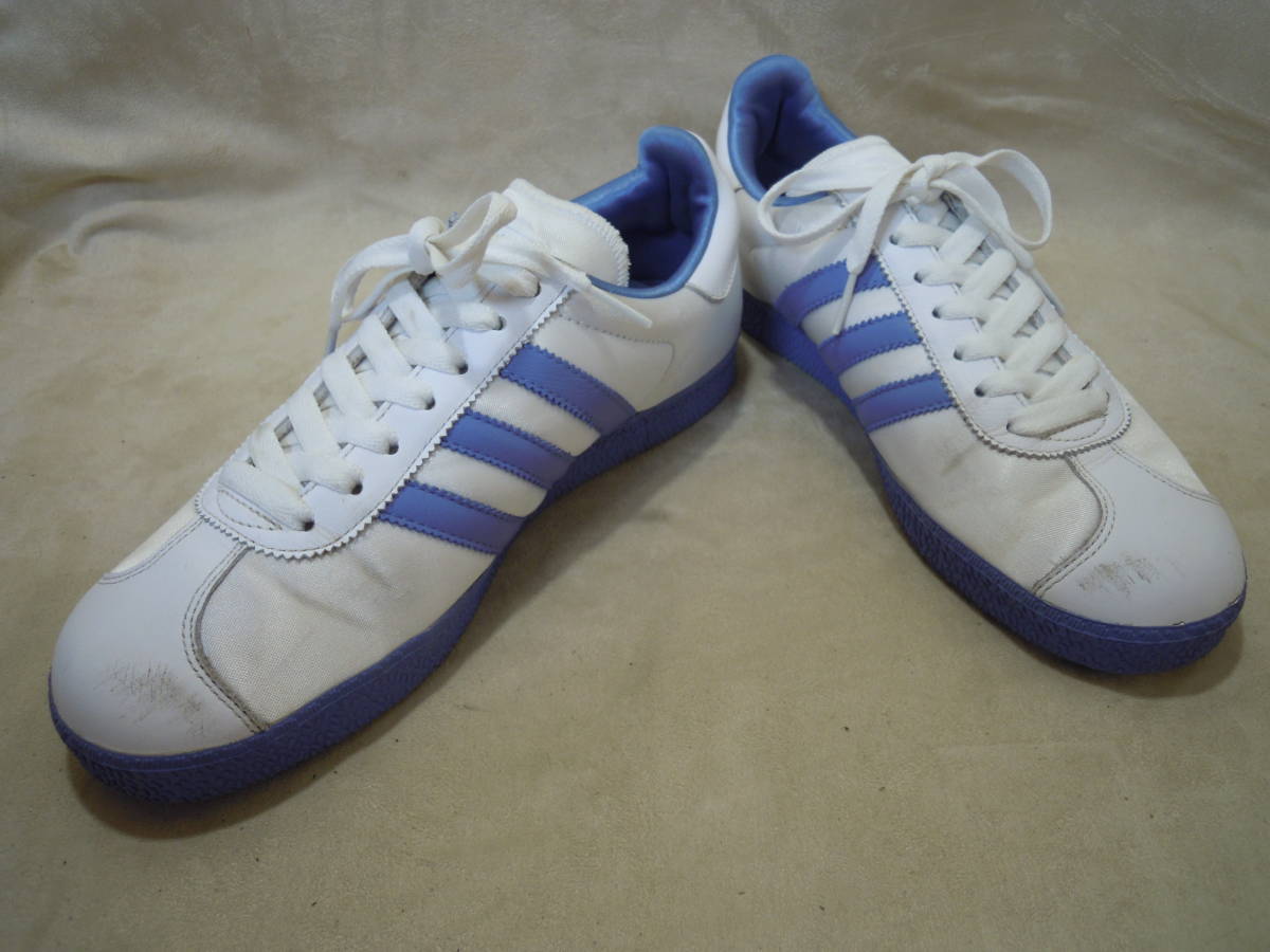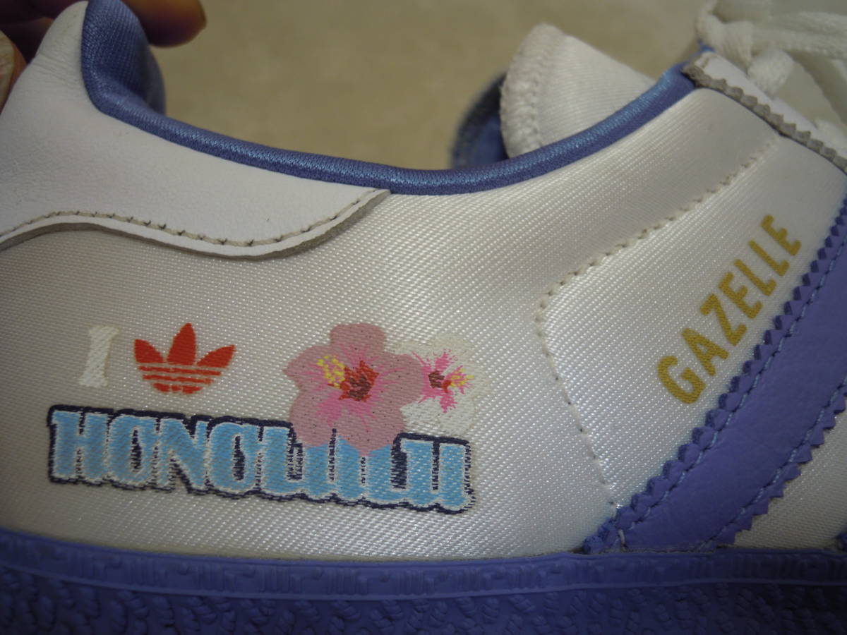 【ブランド・形態】 adidas Originals アディダス GAZELLE 2W (HONOLULU) 561962 サイズ24.0cmです。 【カラー】 ホワイト/バハブルー/メタリックゴールドです。 掲載の実物写真はPC環境や光の加減により実物と色合いが若干異なる場合があります。 【特徴】 クラシックなGazelleガッツレーを鮮やかにデザインしたモデル。 世界の素晴らしい観光地ホノルルを称える特徴的なモデルです。 ハワイの花ハイビスカスがアッパーサイド・インソールにあしらわれていてカワイイです。 ヒール高:約2.0cm、最大幅:約9.0cm 【状態】 少々使用感はございますが、特に目立つダメージは見受けられず、使用に問題無いと思われます。 アッパーはつま先に擦れ傷がありますが、比較的にきれいです。ヒールは少しすり減りがあります。 保管箱はありません。 今は入手が難しいレアなスニーカーです。この機会に是非、早い者勝ちですよ。 【素材】 アッパー:本皮革/サテン地 アウトソール:ラバー 【サイズ】 24.0cm、 質量:595g | |||