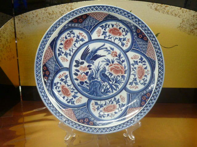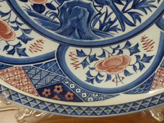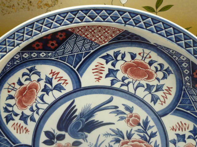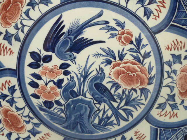 19 陶器 大皿№51 直径 約37cm 5弁「花・鳥」 図 実用品 飾物 中古
