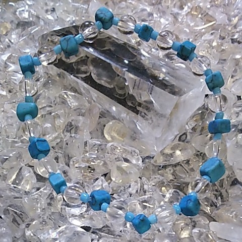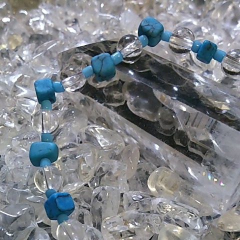 ターコイズと水晶をつかいました。パワーストーンブレスレットになります。