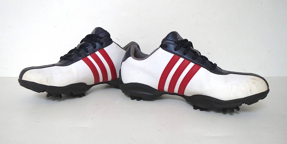 二点落札で送料無料! A2A4 adidas アディダス ゴルフ シューズ 靴 レディース 22.5cm Z-TRAXION ホワイト レッド ネイビー スパイク