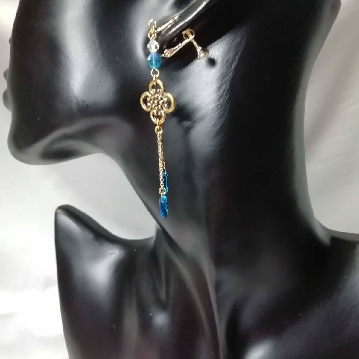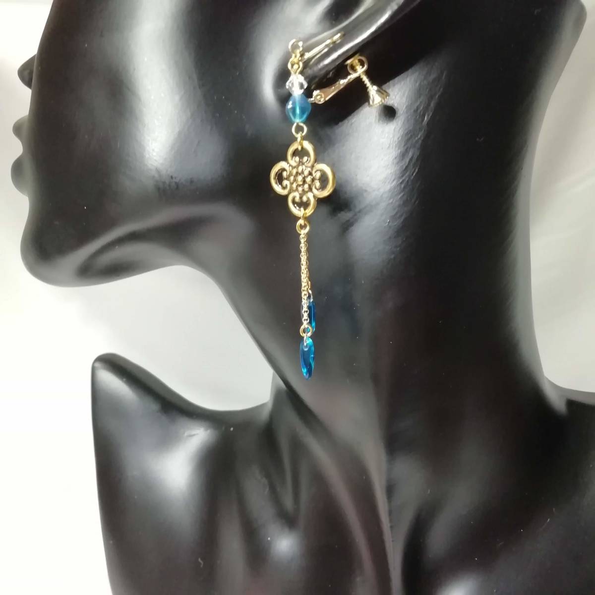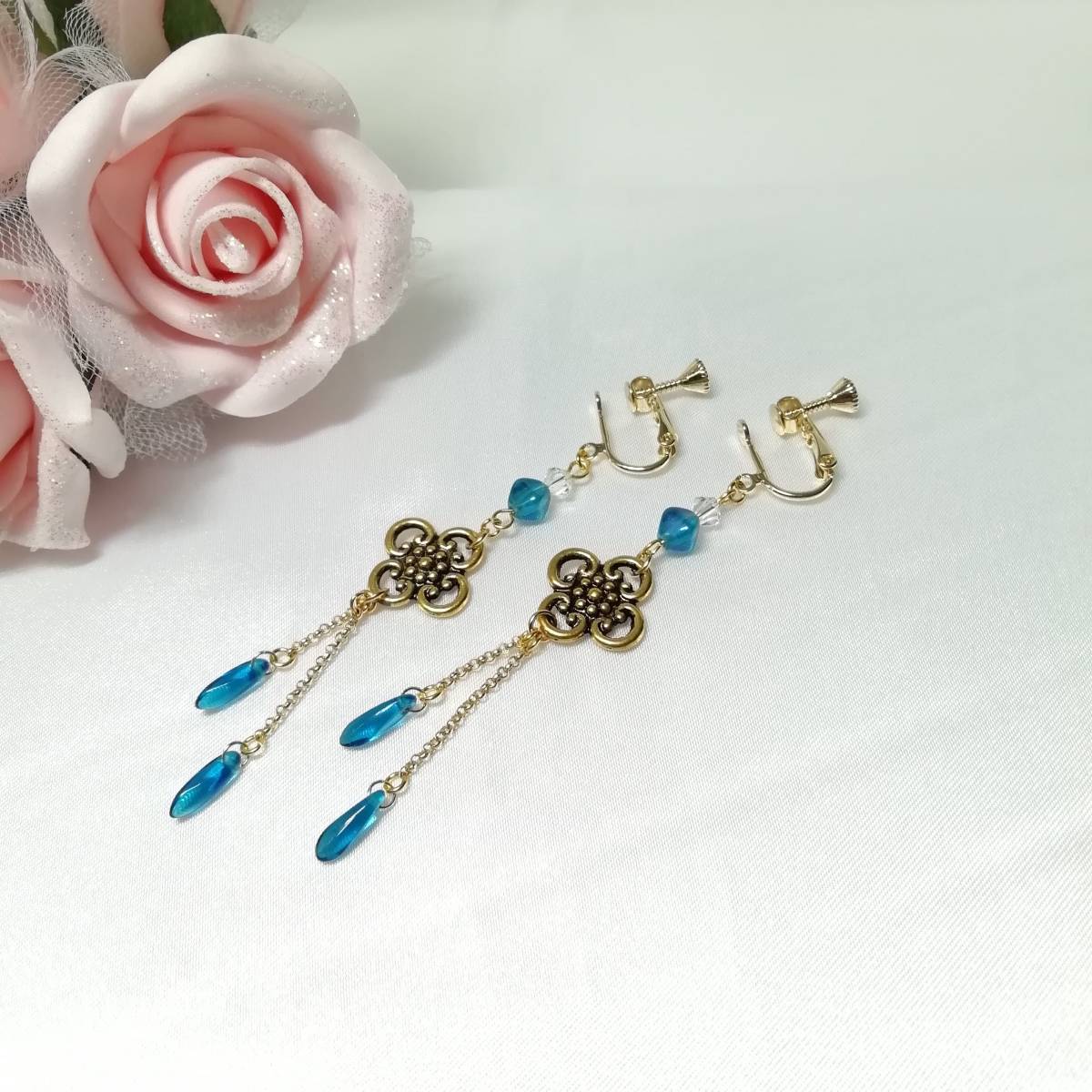 | ★商品内容★ ★チベタンチャームとカプリブルーのハンドメイドイヤリング★ゴールド・クリスタル・上品・チベタン・碧・ダガー・チェコ・ゴージャス カプリブルーの濃い青と チベタンフラワーチャームを組み合わせた シックでゴージャスな印象のイヤリングです*・**。・*。☆・.*・**。 大き目のクリスタルビーズが キラキラと光に反射してとても綺麗に煌きます*・**。.☆・**.・**・**。 普段使いはもちろん、お出掛けにも お洒落のワンポイントなどにも最適です*・**。☆・**.・**.。 【素材】 スワロフスキー5328クリスタル(オーストリア製)4mm チェコビーズバイコーンカプリブルー(チェコ産)6mm チェコビーズダガーカプリブルー(チェコ産)10mmx3mm チベタンフラワーチャームアンティークゴールド17mm チェーンシャイニーモデレードゴールド カンより垂れ下がる長さは、約7.1㎝です。 Eー547 ★商品状態★ ・画像と実物の色味が多少異なる場合があります。 ・緩衝材(プチプチ等)を使用し、防水梱包でお届け致します。 ★注意事項★ ***~ご購入前に必ずお読み下さい~*** ***商品について*** *一点一点心を込めて作っておりますが、手作りなため多少の歪み等あるかもしれません。 手作りの味わいと、世界で一つだけの作品とお考えいただければ幸いです。 *デリケートな商品ですので、強く引っ張ったりすると破損する事もあります。 お取り扱いにはご注意ください。 *写真も完璧な色合いの表現にはなっていない場合もあります。 *基本イヤリング金具は跳ね上げ式ネジ付きを使って作成しています。 *金属アレルギーや化学物質アレルギーなどへの対応はしておりませんので、ご心配な方はご遠慮下さいますようお願い致します。 *永くご愛用頂くために、ご使用後は柔らかい布等で軽く拭いてください。 ***ご質問について*** *ご購入前にお願い致します。 日中は仕事をしておりますので、ご返事が直ぐに出来ない場合がございます。 出来る限り早い対応を心がけますが、ご了承ください。 また、発送までには、お振込み確認後、翌日の発送を心がけておりますが、仕事の都合により2~3日程かかる場合がございます。(その際にはナビにてご連絡いたします) お急ぎの場合は、極力対応いたしますが、場合によっては対応致しかねる事もあります。ご了承下さいませ。 落札後4日以内にお手続き、ご連絡が無い場合は落札者都合で削除致します。 発送日指定・ご入金の予定が1週間以上先をお考えの方は、入札の前に質問よりご連絡くださいませ。 予めご了承の上、ノークレーム・ノーリターンでお願い致します。 | |||