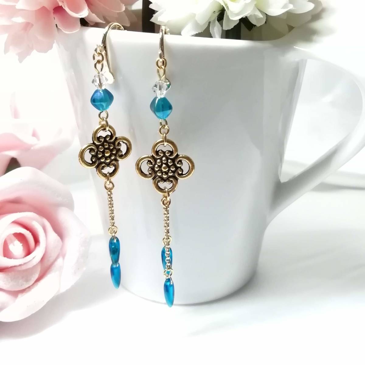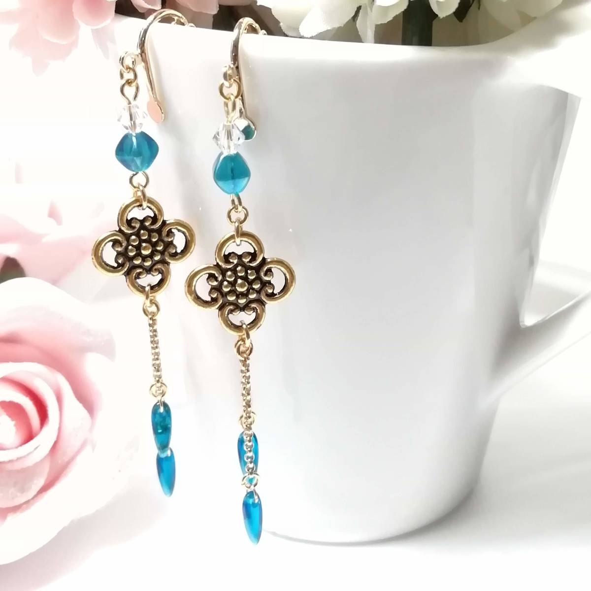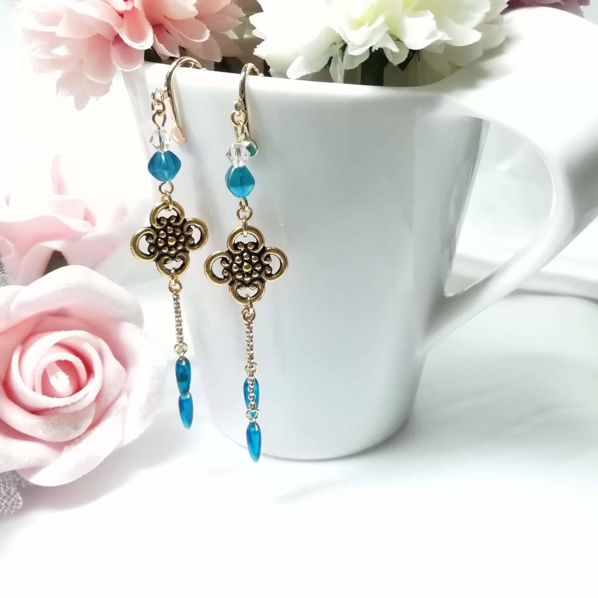 | ★商品内容★ ★チベタンチャームとカプリブルーのハンドメイドイヤリング★ゴールド・クリスタル・上品・チベタン・碧・ダガー・チェコ・ゴージャス カプリブルーの濃い青と チベタンフラワーチャームを組み合わせた シックでゴージャスな印象のイヤリングです*・**。・*。☆・.*・**。 大き目のクリスタルビーズが キラキラと光に反射してとても綺麗に煌きます*・**。.☆・**.・**・**。 普段使いはもちろん、お出掛けにも お洒落のワンポイントなどにも最適です*・**。☆・**.・**.。 【素材】 スワロフスキー5328クリスタル(オーストリア製)4mm チェコビーズバイコーンカプリブルー(チェコ産)6mm チェコビーズダガーカプリブルー(チェコ産)10mmx3mm チベタンフラワーチャームアンティークゴールド17mm チェーンシャイニーモデレードゴールド カンより垂れ下がる長さは、約7.1㎝です。 Eー547 ★商品状態★ ・画像と実物の色味が多少異なる場合があります。 ・緩衝材(プチプチ等)を使用し、防水梱包でお届け致します。 ★注意事項★ ***~ご購入前に必ずお読み下さい~*** ***商品について*** *一点一点心を込めて作っておりますが、手作りなため多少の歪み等あるかもしれません。 手作りの味わいと、世界で一つだけの作品とお考えいただければ幸いです。 *デリケートな商品ですので、強く引っ張ったりすると破損する事もあります。 お取り扱いにはご注意ください。 *写真も完璧な色合いの表現にはなっていない場合もあります。 *基本イヤリング金具は跳ね上げ式ネジ付きを使って作成しています。 *金属アレルギーや化学物質アレルギーなどへの対応はしておりませんので、ご心配な方はご遠慮下さいますようお願い致します。 *永くご愛用頂くために、ご使用後は柔らかい布等で軽く拭いてください。 ***ご質問について*** *ご購入前にお願い致します。 日中は仕事をしておりますので、ご返事が直ぐに出来ない場合がございます。 出来る限り早い対応を心がけますが、ご了承ください。 また、発送までには、お振込み確認後、翌日の発送を心がけておりますが、仕事の都合により2~3日程かかる場合がございます。(その際にはナビにてご連絡いたします) お急ぎの場合は、極力対応いたしますが、場合によっては対応致しかねる事もあります。ご了承下さいませ。 落札後4日以内にお手続き、ご連絡が無い場合は落札者都合で削除致します。 発送日指定・ご入金の予定が1週間以上先をお考えの方は、入札の前に質問よりご連絡くださいませ。 予めご了承の上、ノークレーム・ノーリターンでお願い致します。 | |||