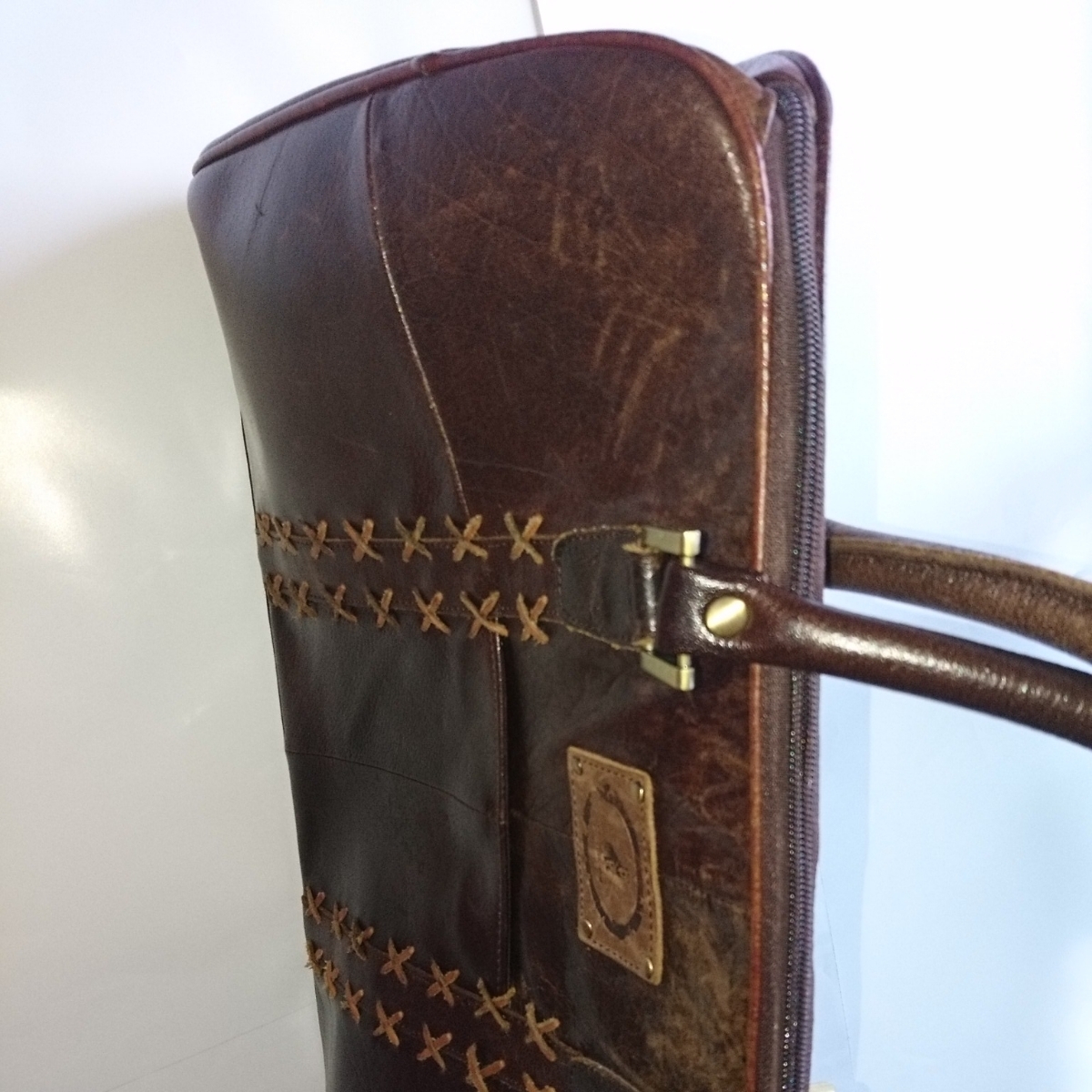 ノーブラの茶色な本革ボストンバッグですが、中国製の安物ではなく勤勉優秀な皮革職人が上質な柔らかい若手の本革を調達して製作しましたモノで、大変良い皮革鞄です。外観は擦り傷、日焼け等使用感たっぷりの年期モノです。数年前に6万円にて購入し2年ほど愛用しましたが、長引くコロナ禍によりほぼ出張しない立場に傾いたのでやむなく手放す決意しました。ファスナーは両方向式だったが片方が破損しており一方向のみでの開閉となります。内ポケットのジッパーは完動しています。把手は一度修理歴有りますがオリジナルのままですので、擦れ皺が有ります。外寸は概ね横幅50×高さ30×厚さ17センチです。ほぼほぼ美品ですが経年劣化を鑑み、細かい擦れ傷等々を気にする神経質な器の小さき方や転売業者・質入れ前提のセコい性格の方および受取後に難癖をつけ返品返金要求をされるようなややこしい性格の方の入札は断固ご遠慮願います。本品の梱包は宅配用バッグを考えていますが収納できる袋が見つからない場合には段ボール箱に梱包しますので、送料は別途連絡も本体重量は約1㎏程度です。