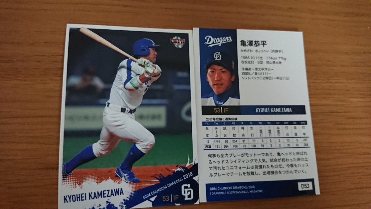 BBM2018 中日ドラゴンズ 亀澤恭平の計1点になります。