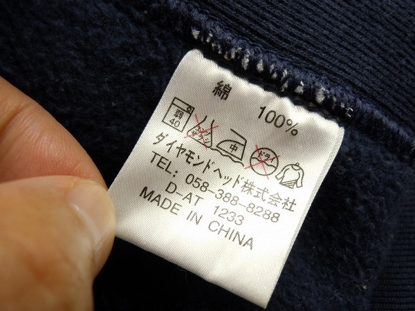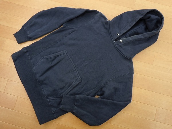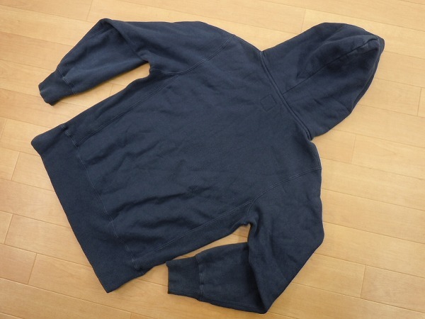 ●ダイアモンドヘッド、スウェットパーカーです。あくまでも古着のため、ノークレームノーリターンでお願いいたします。使用感は、ございます。素材は綿100で、厚手で、しっかりとしたスウェット生地で、リバースウィーブのような作りのパーカーです。フードの紐が欠損しております。左脇の下に、1cmほどの解れ箇所がございます。色は紺色で、やや色落ち感がございます。