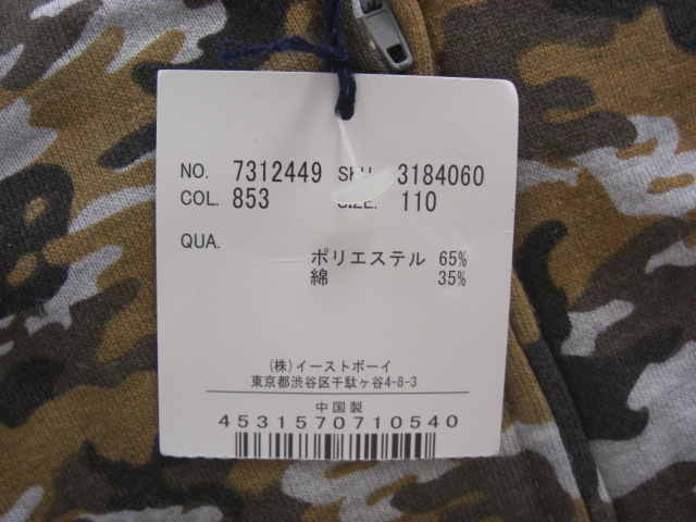 未使用110イーストボーイ 迷彩柄半袖パーカ グレイ