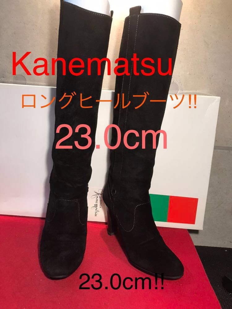 【売り切り!!送料無料!!】A-23 Kanematsu!!ロングヒールブーツ!!スエード!!23.0cm!! 中古!!激安!!美脚!!
