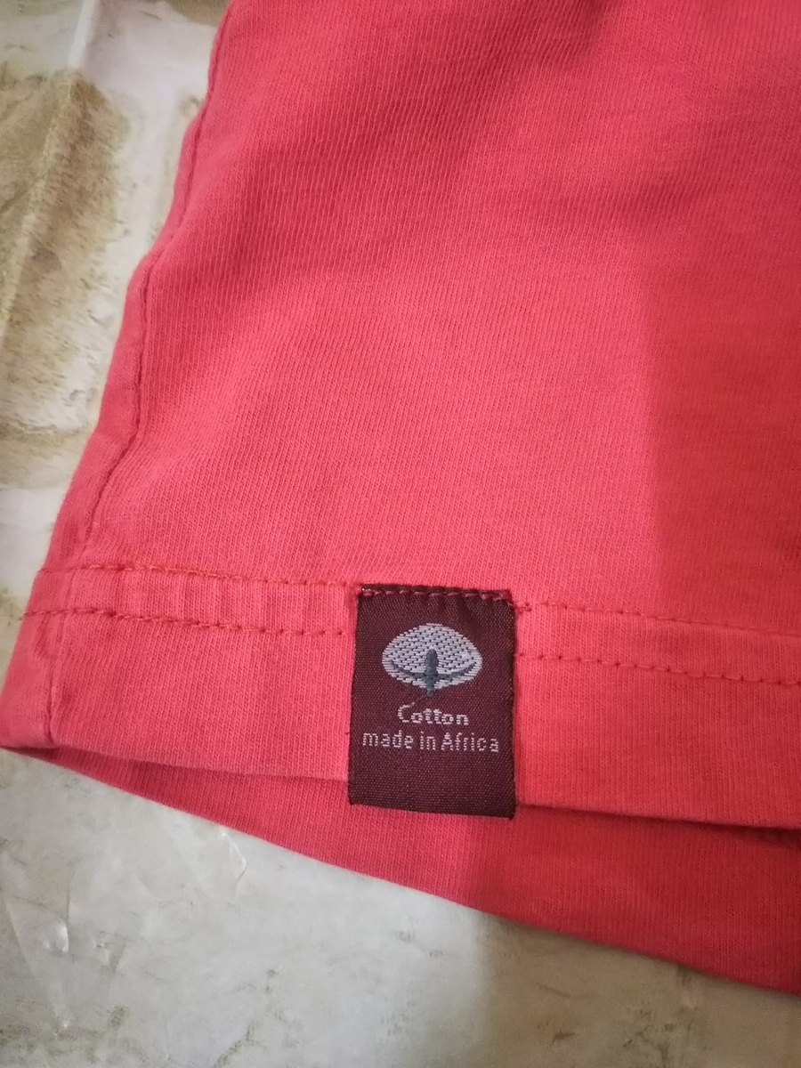 品質タグが切り取られていますので素材については不明ですが、一般的なコットン素材のTシャツだと思います。