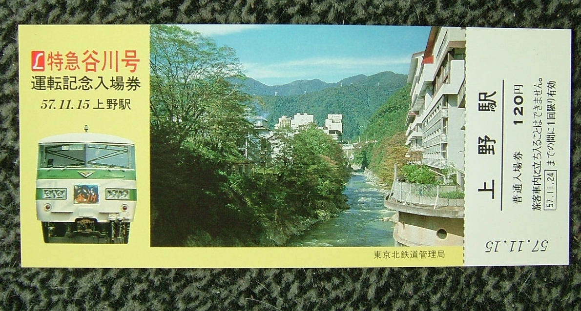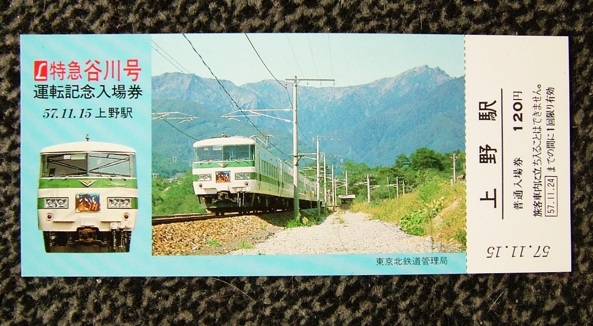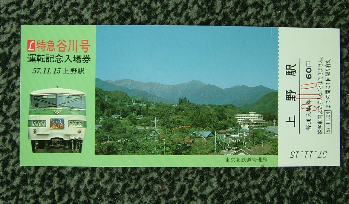 特急谷川号運転記念入場券 57.11.15 上野駅