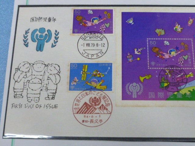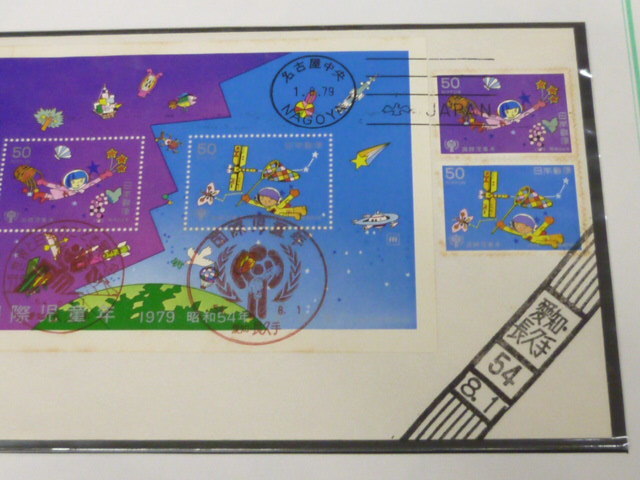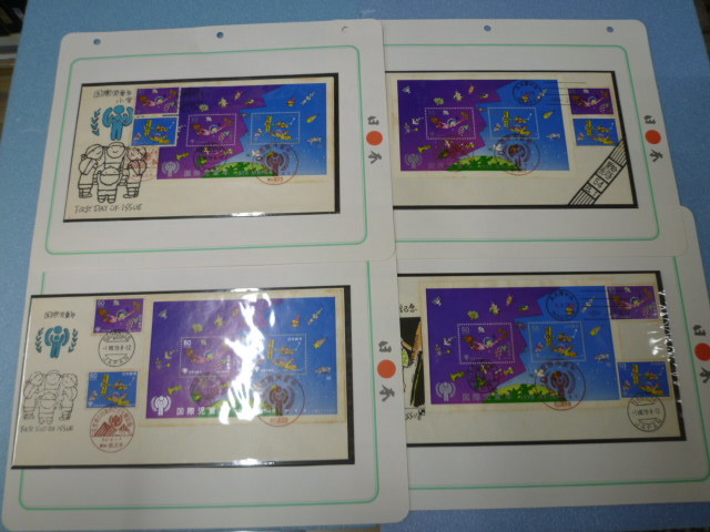 19 F#848B 日本 初日カバー 1979年 国際児童年 2種完・小型シート貼 計4通