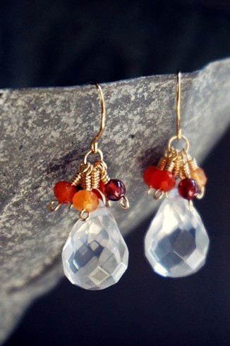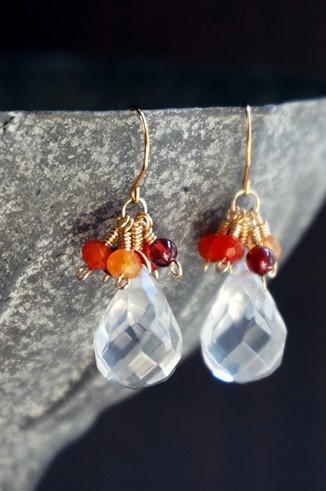 K14GF ピアス 0134 ミルキークオーツ・カーネリアン・ガーネット 天然石・パワーストーンピアス
